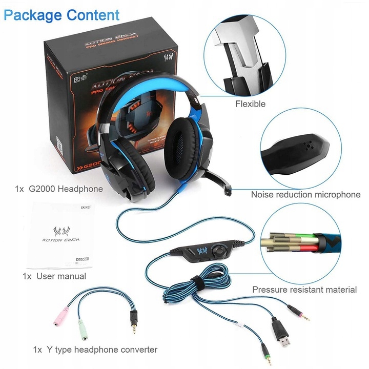 Просматривая «KOTION każdy G2000 słuchawki gamingowe przewodowa 5.0 Stereo gra», вы можете быть уверены, что данный товар из каталога «[rubrica_name]» будет доставлен из Польши и проверен на целостность. В цене товара, указанной на сайте, учтена доставка из Польши. Внимание!!! Товары для Евросоюза, согласно законодательству стран Евросоюза, могут отличаться упаковкой или наполнением.
