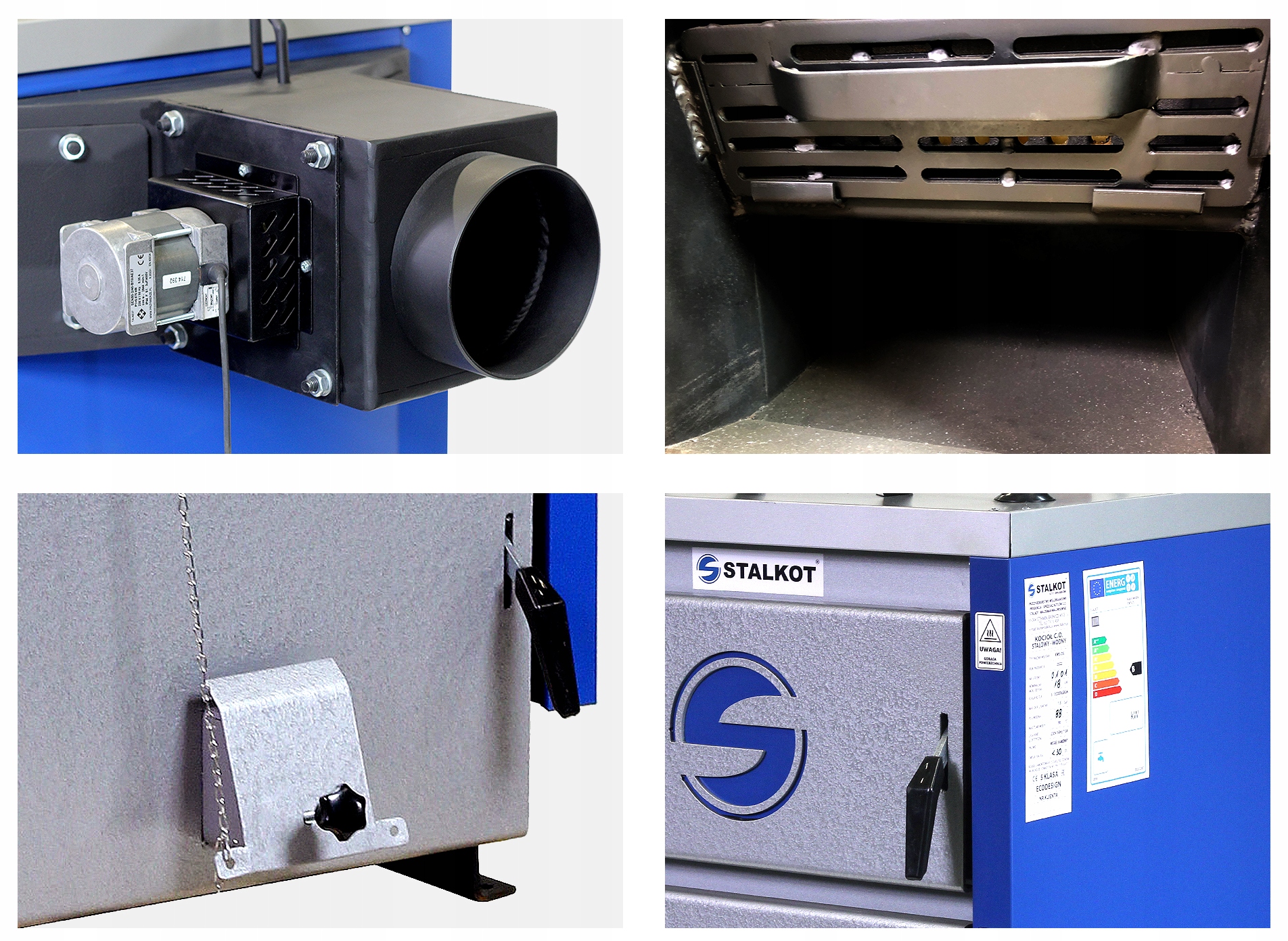При покупке нашего котла вы получаете в стандартной комплектации необходимый комплект, состоящий из контроллера ATOS (очень прост в использовании), вытяжного вентилятора и регулятора тяги Afriso. .