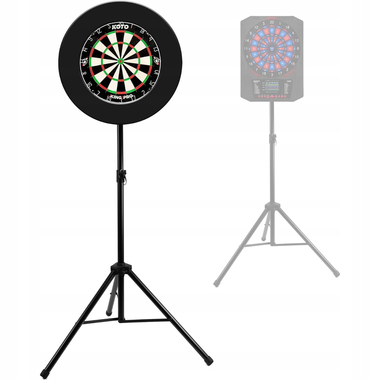У вас нет места для установки щита дротика на стене? Или, может быть, вы хотите взять игру на свежий воздух или в поле? koto Heavy Duty Dartstandard Stand - это стабильная и мобильная альтернатива классическому креплению - идеально подходит для каждого места и каждого случая. Благодаря регулируемой высоте , солидной конструкции и возможностям установки различных типов дисков, вы получаете полную гибкость и комфорт игры .