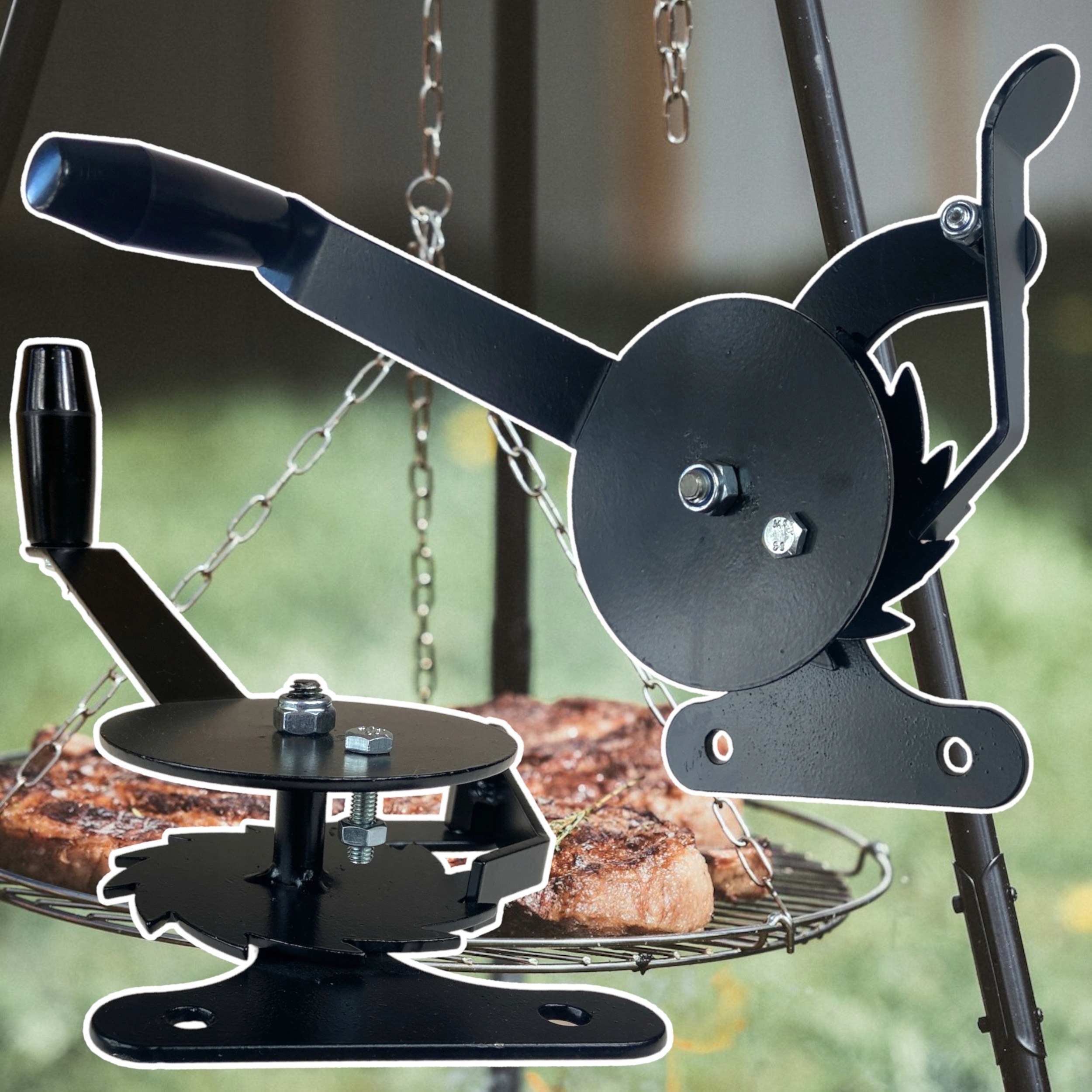Гриль с механизмом подъема решетки - это практическое устройство, используемое для грилей с штативом. Гриль на триоге