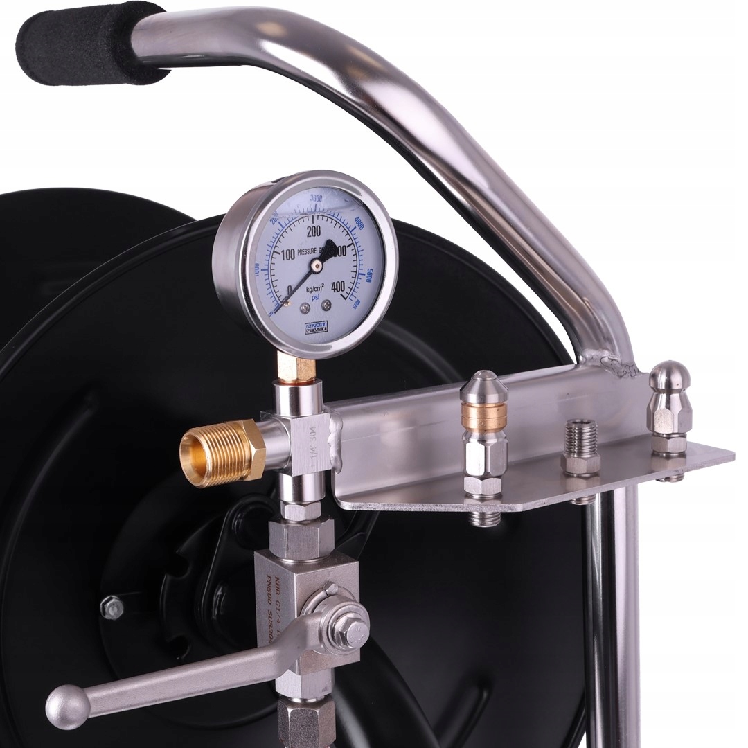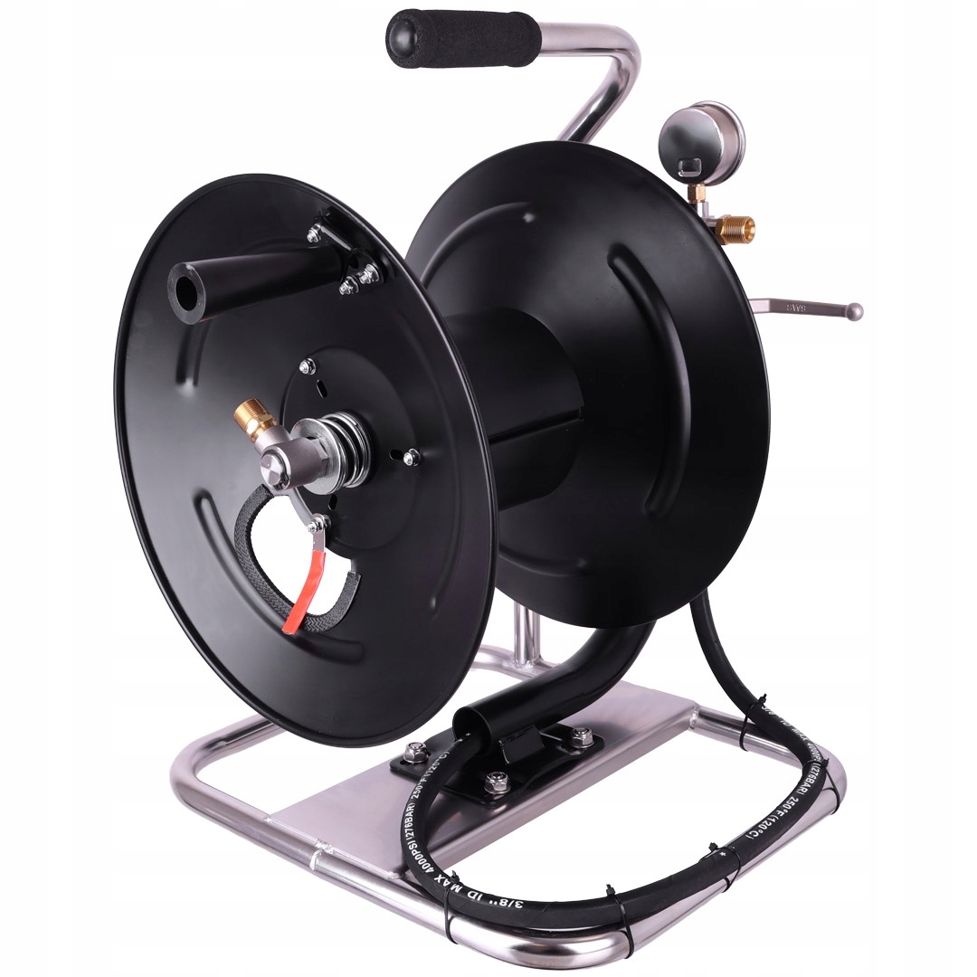Катушка для канализационного шланга 40 м. Роторная насадка с манометром. Тележка для насоса омывателя.