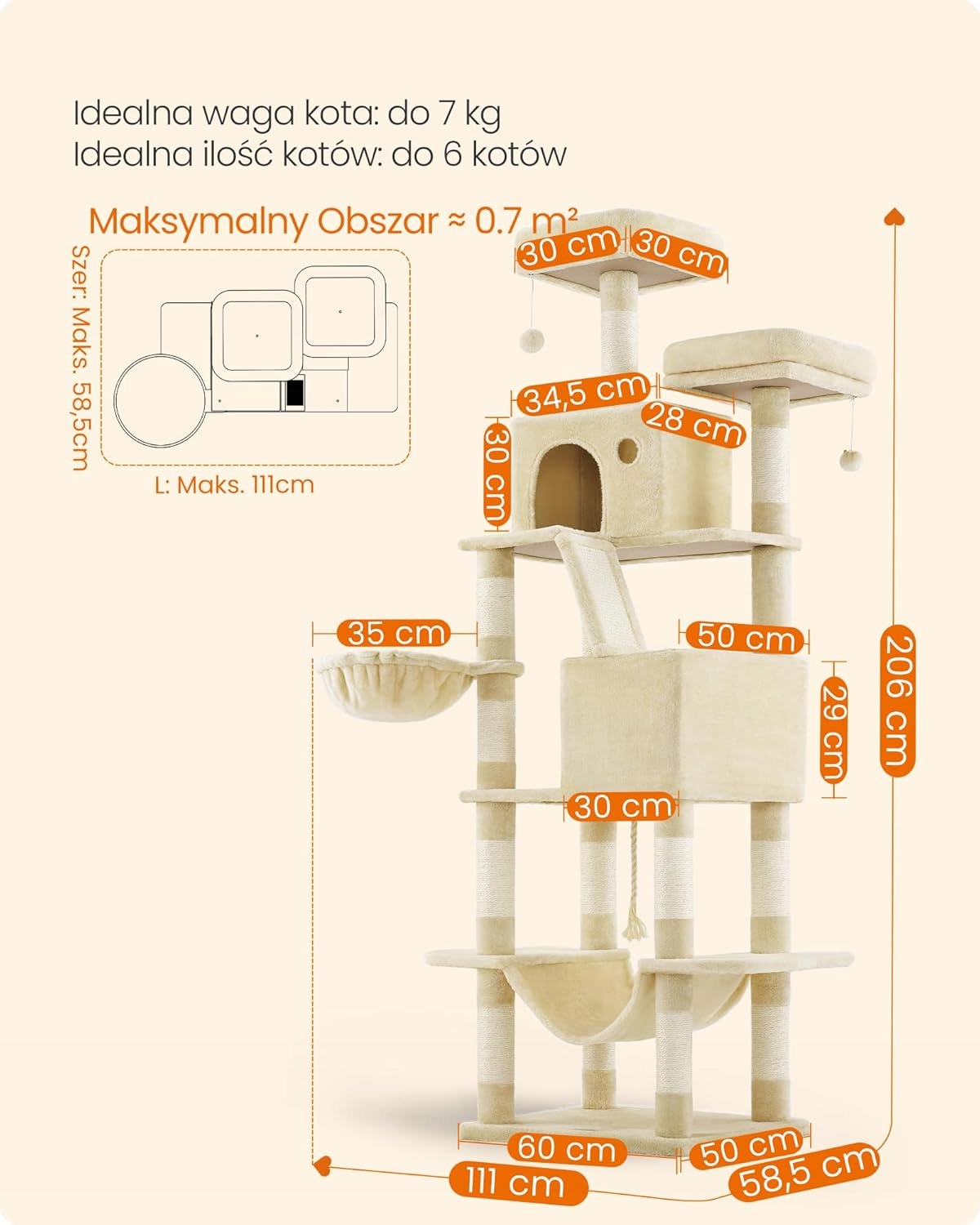 Рост 206 см: Идеально подходит для кошек, которые любят забираться на высокие места и наблюдать за происходящим вокруг.