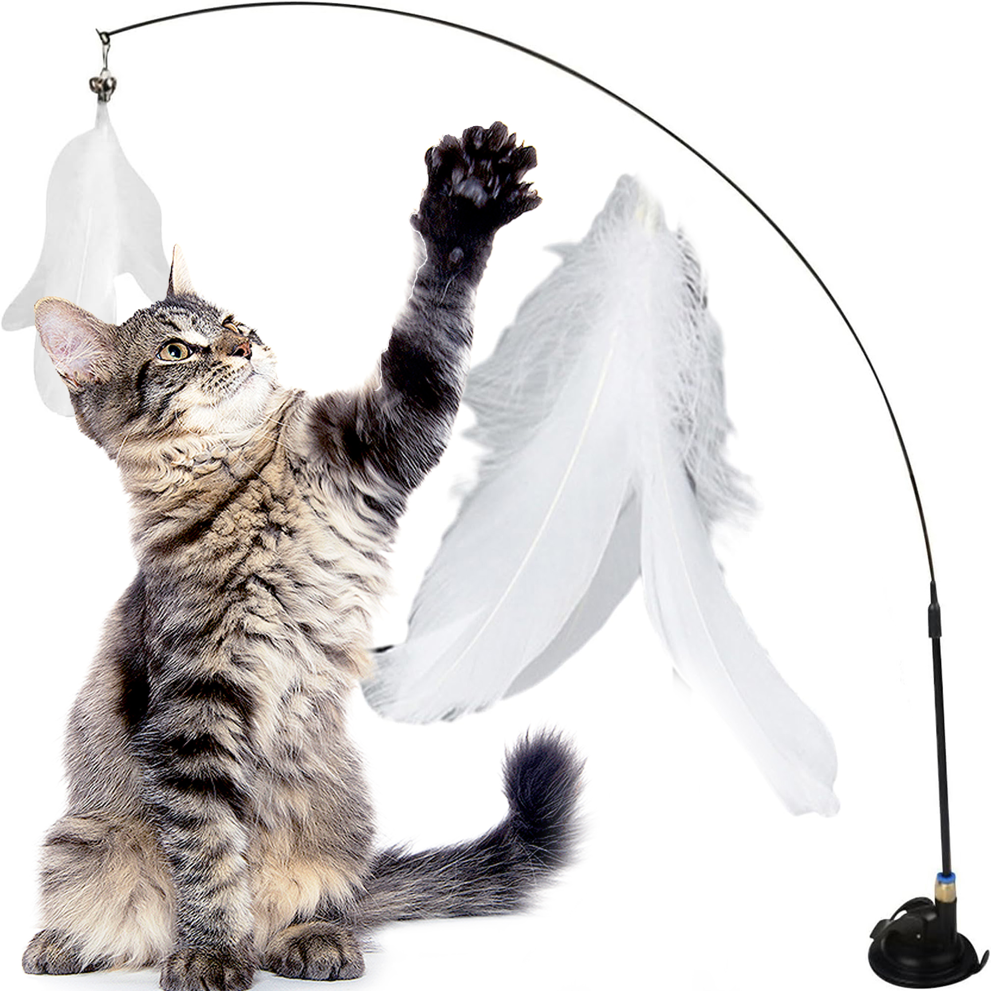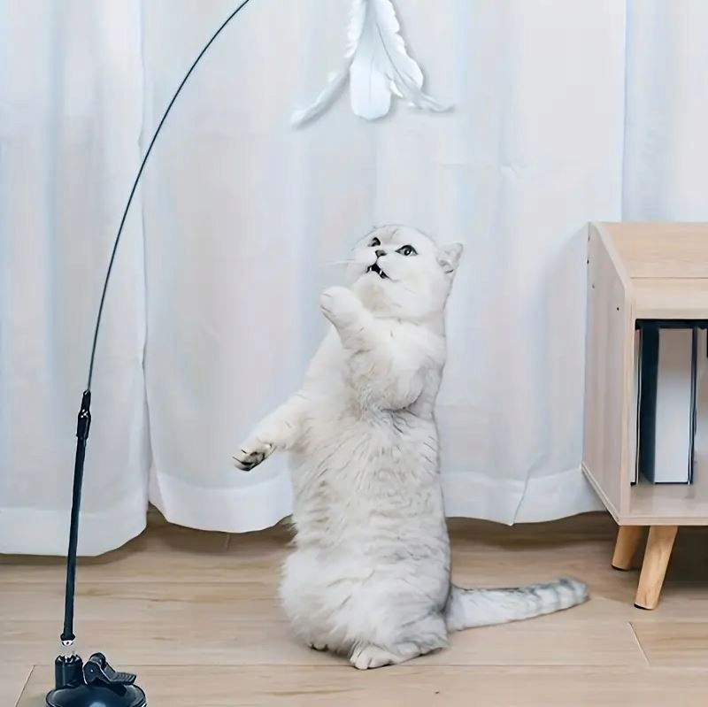 ✅ игрушка для кошек - подвижный стержень с всасывающей чашкой и летающими перьями h1>