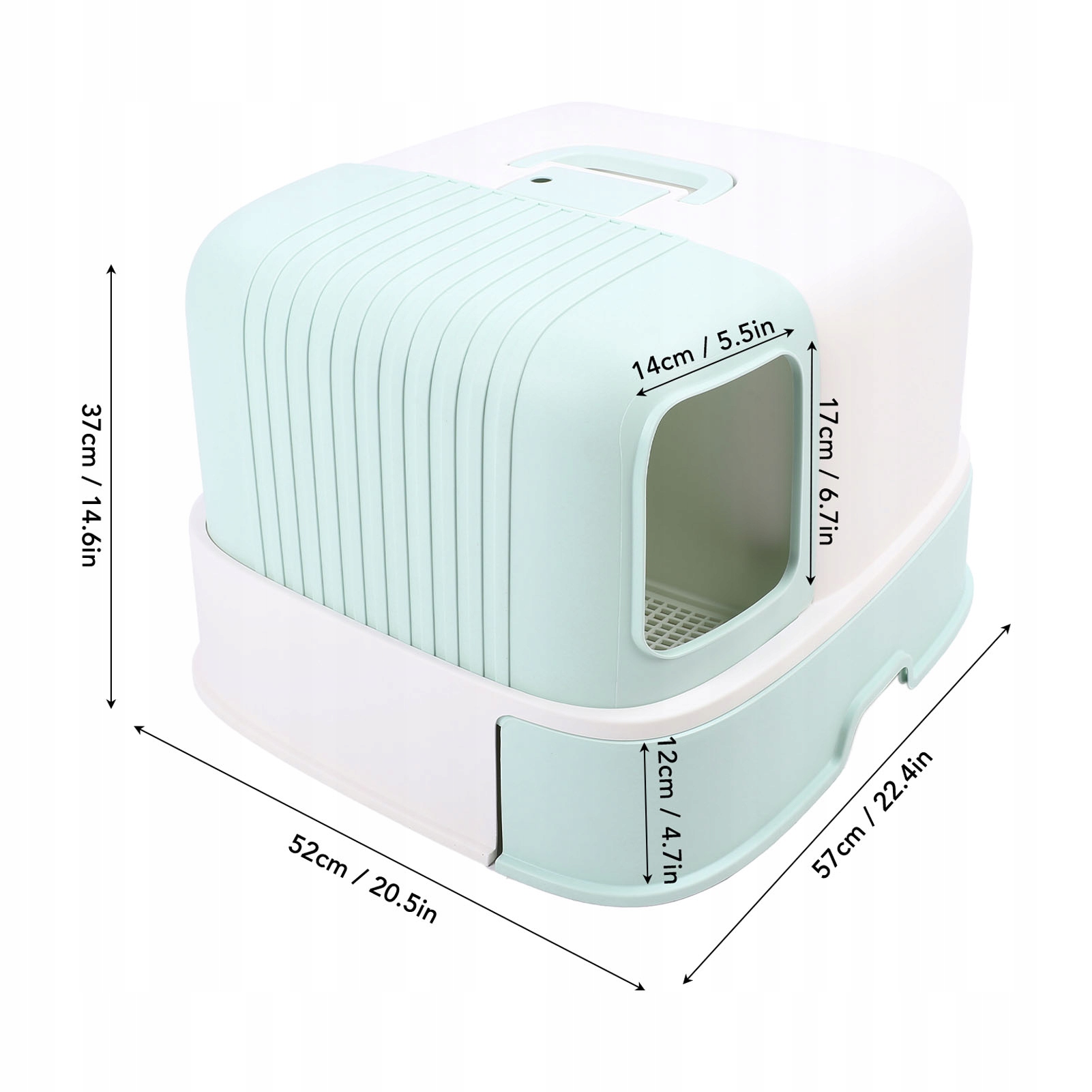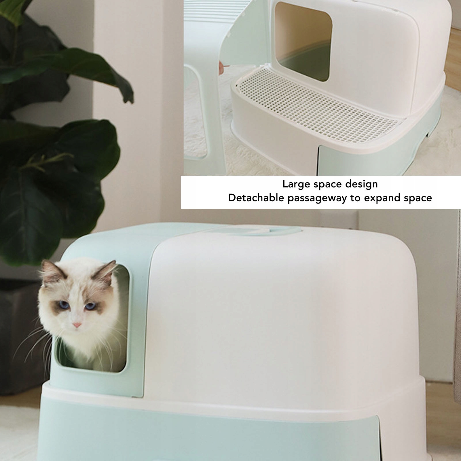 2. Прикрепленная структура: полностью закрытая структура этой большой кошки ящик для мусора эффективно изолирует и сводит к минимуму распространение запаха, помогая сохранить освежение и чистоту дома.