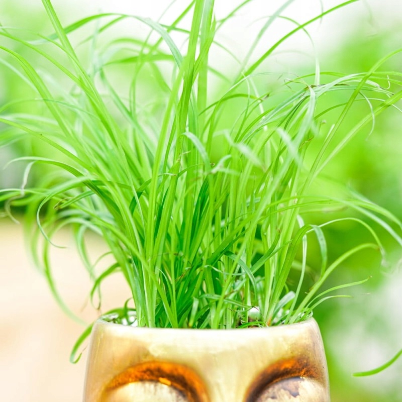 Cyperus Zumula Cat Grass отличается стройной, элегантной формой, тонкими, заостренными листьями и стеблем, который действительно напоминает травинку. Листья на стебле образуют зонтиковидные розетки. Это декоративное растение, которое домашние животные могут грызть. Кошачья хурма поддерживает пищеварение наших питомцев, отвлекает внимание от других растений в доме и занимает кошку.