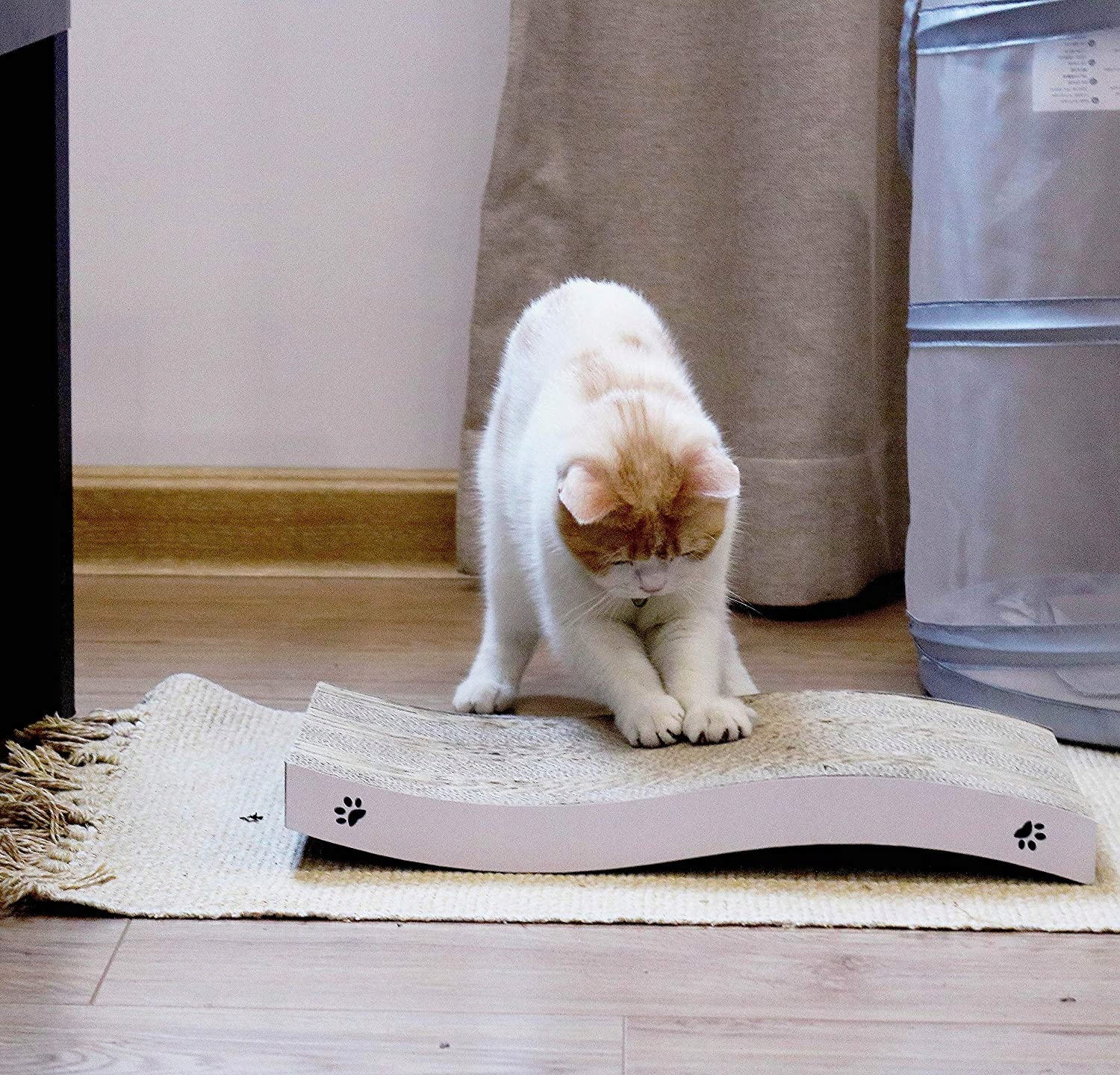 изготовлен из прочного гофрированного картона и 100% переработана, что делает его достаточно сильным, чтобы противостоять самым острым когтям в течение достаточно долгого времени. Это также безопасно и не -токсично. Даже клей, используемый в структуре, является кукурузным крахмалом идеально полезно для ваших очаровательных кошек
