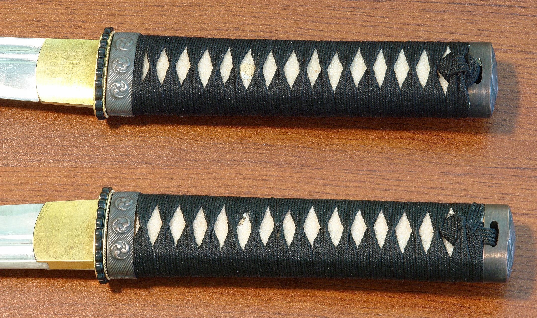 - деревянная ручка (цука) обтянута кожей ската (самэ-гава), тесьма (цука ито) черный хлопок