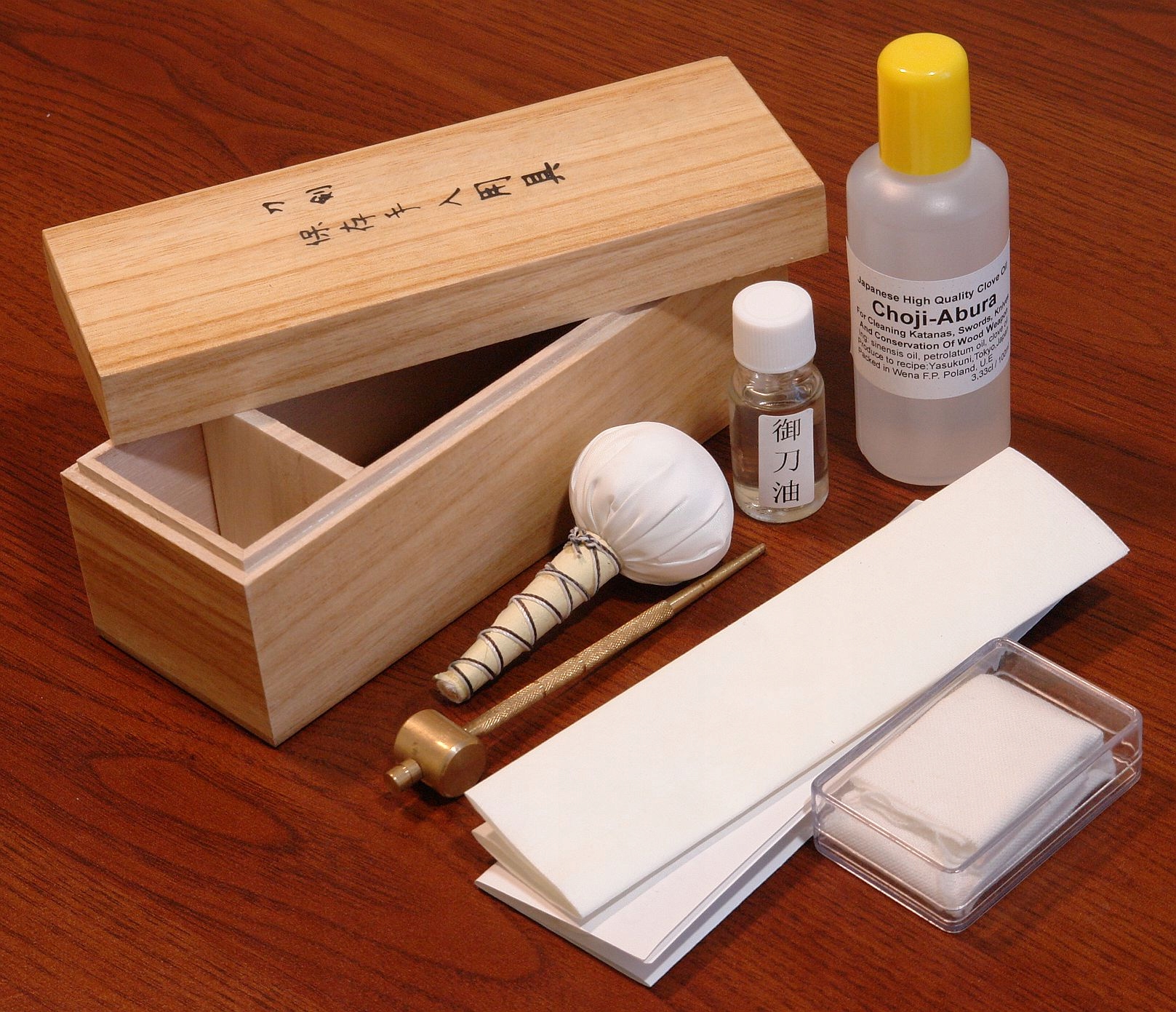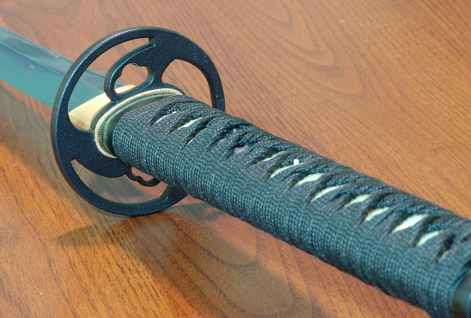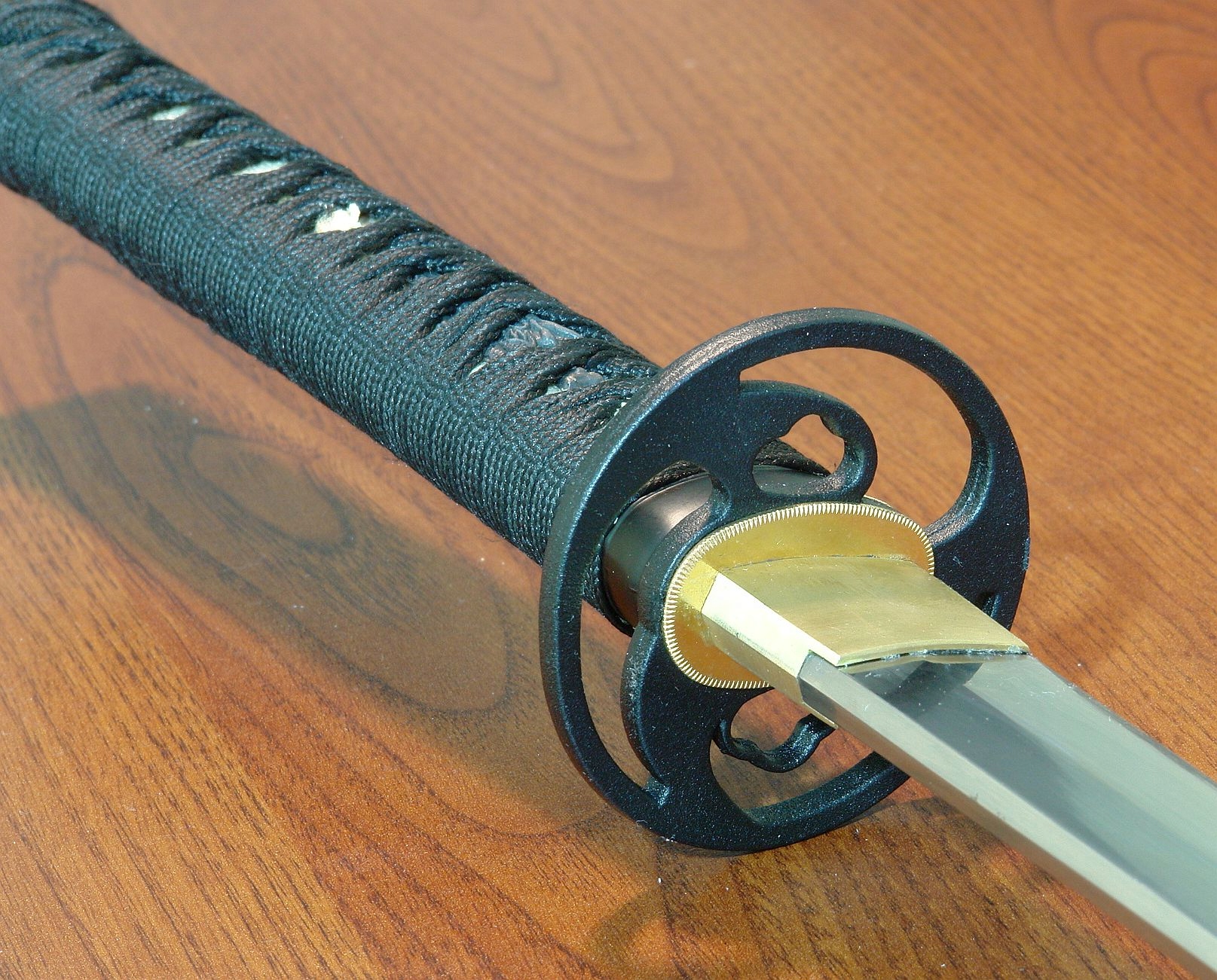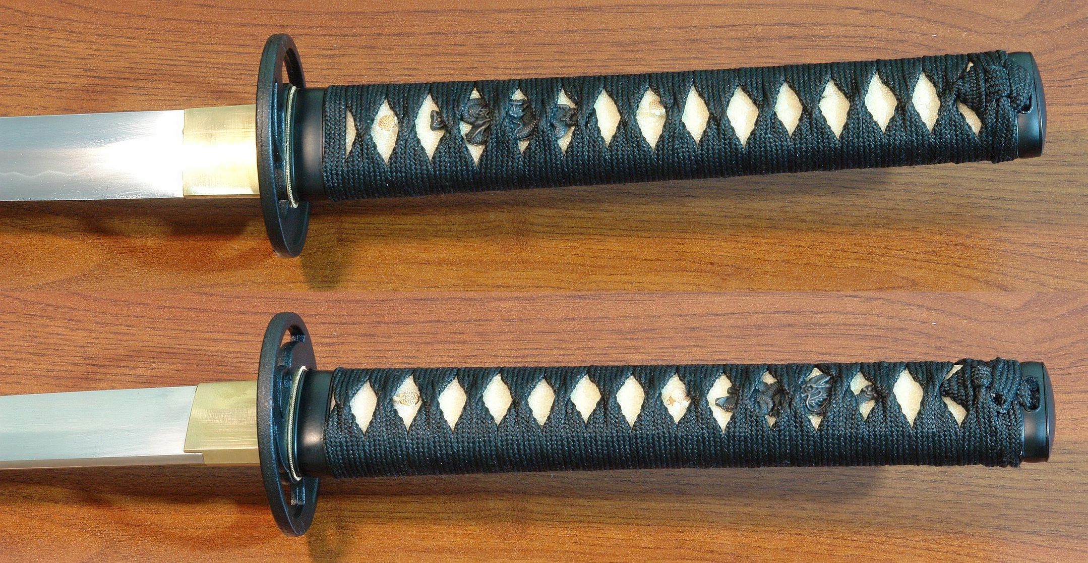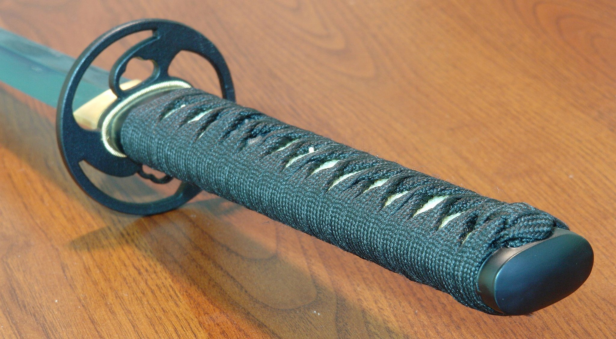 - Деревянная ручка (цука), обтянутая натуральной кожей ската (саме-гава), тесьма (цука ито) шелком (вискоза).