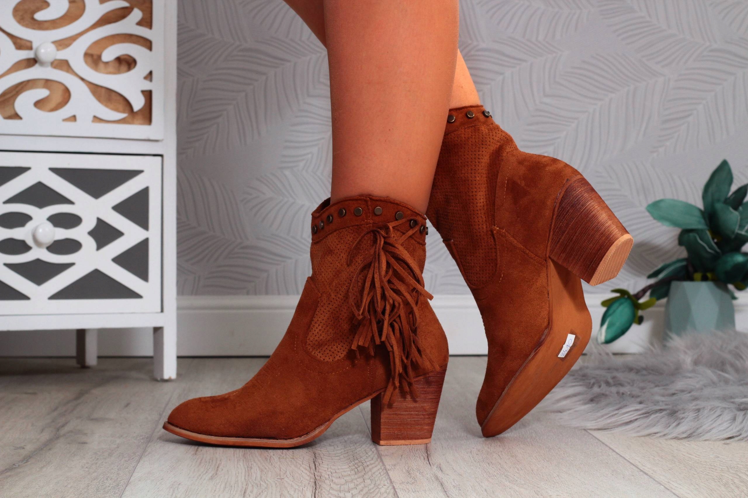 Женские замшевые ковбойские сапоги без шнуровки верблюжьего цвета на высоком каблуке.? Имеют декоративную бахрому. Устойчивая подошва на каблуке обеспечивает комфорт использования.💯 Классический дизайн подойдет ко многим стилям!💞