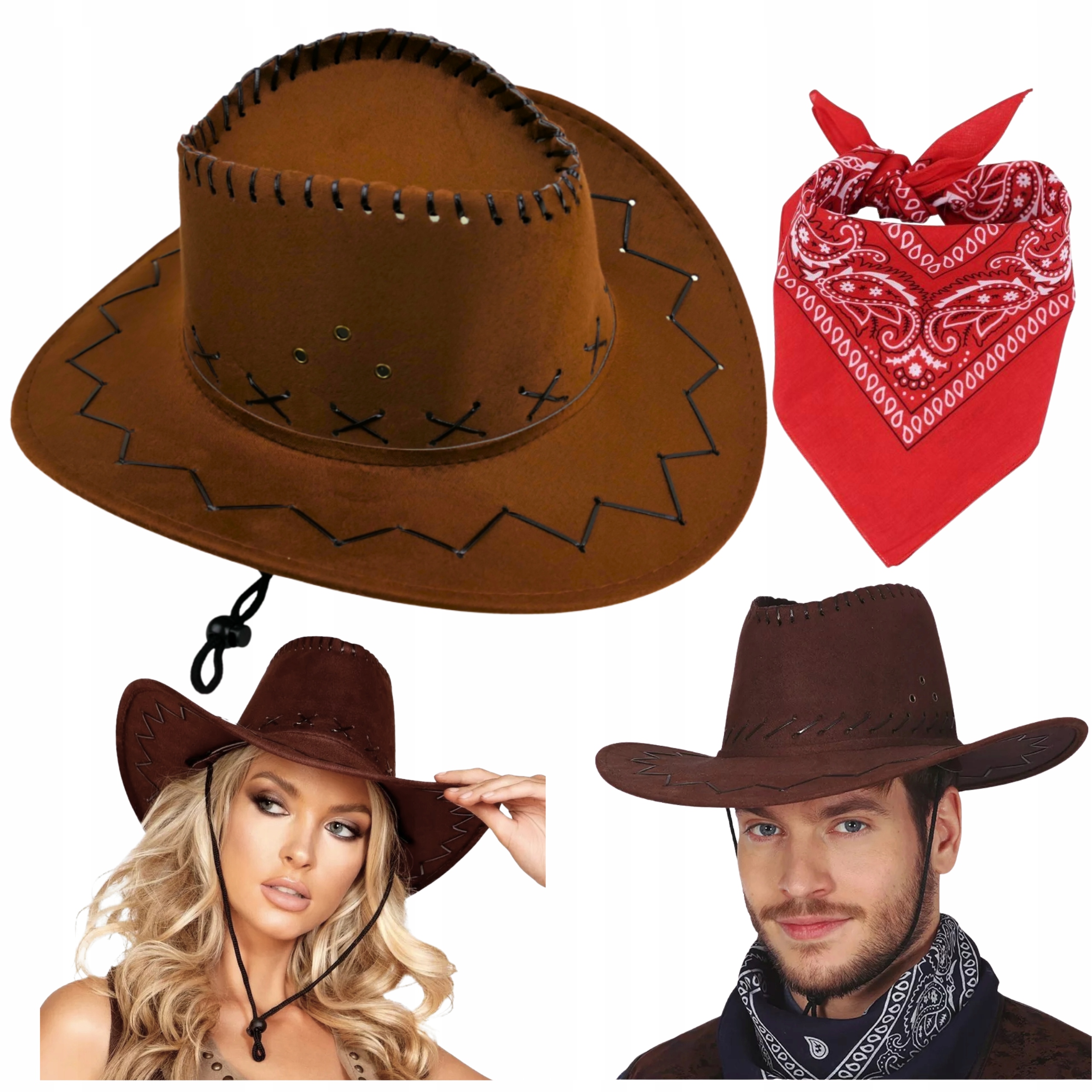 КОВБОЙСКАЯ ШЛЯПА + КОВБОЙСКАЯ БАНДАМ КОВБОЙСКАЯ КОВБОЙ 8-99 лет коричневая
