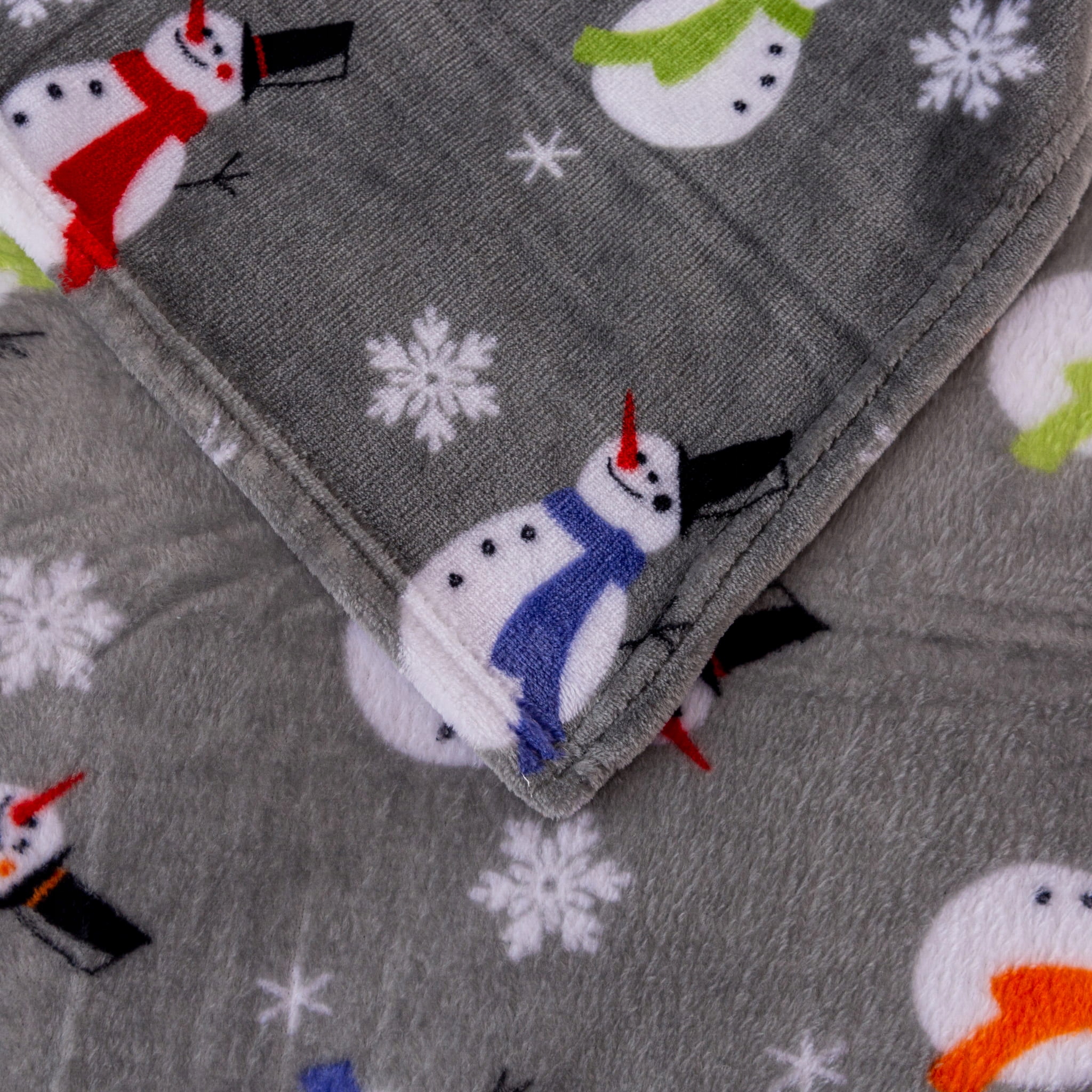 Одеяло 160х200 Рождественские Декоративные Рождественские Снеговики Серое