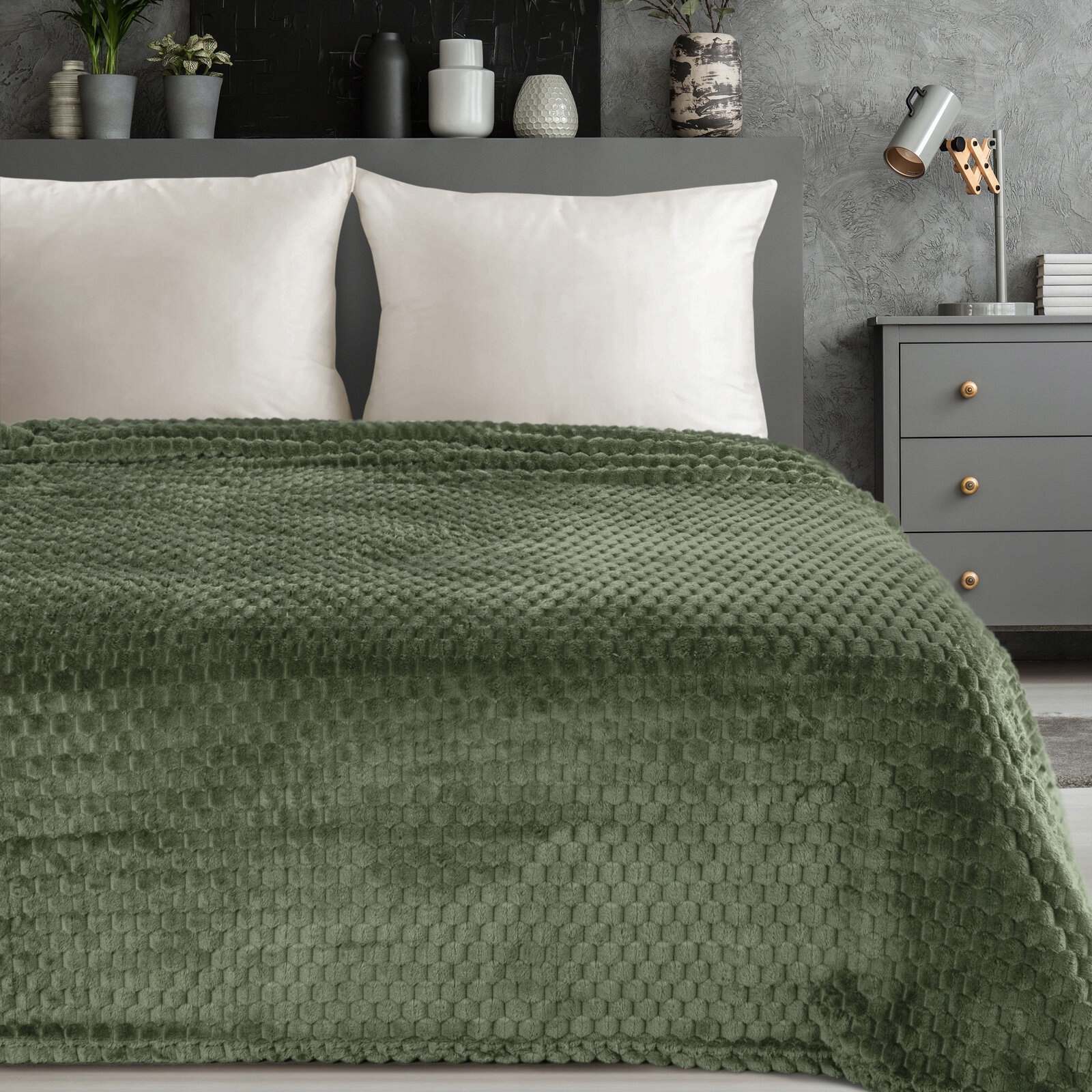 ОДЕЯЛО CINDY6 ОЛИВКОВОЕ С РЕЗЬБОВЫМ УЗОРОМ 170X210