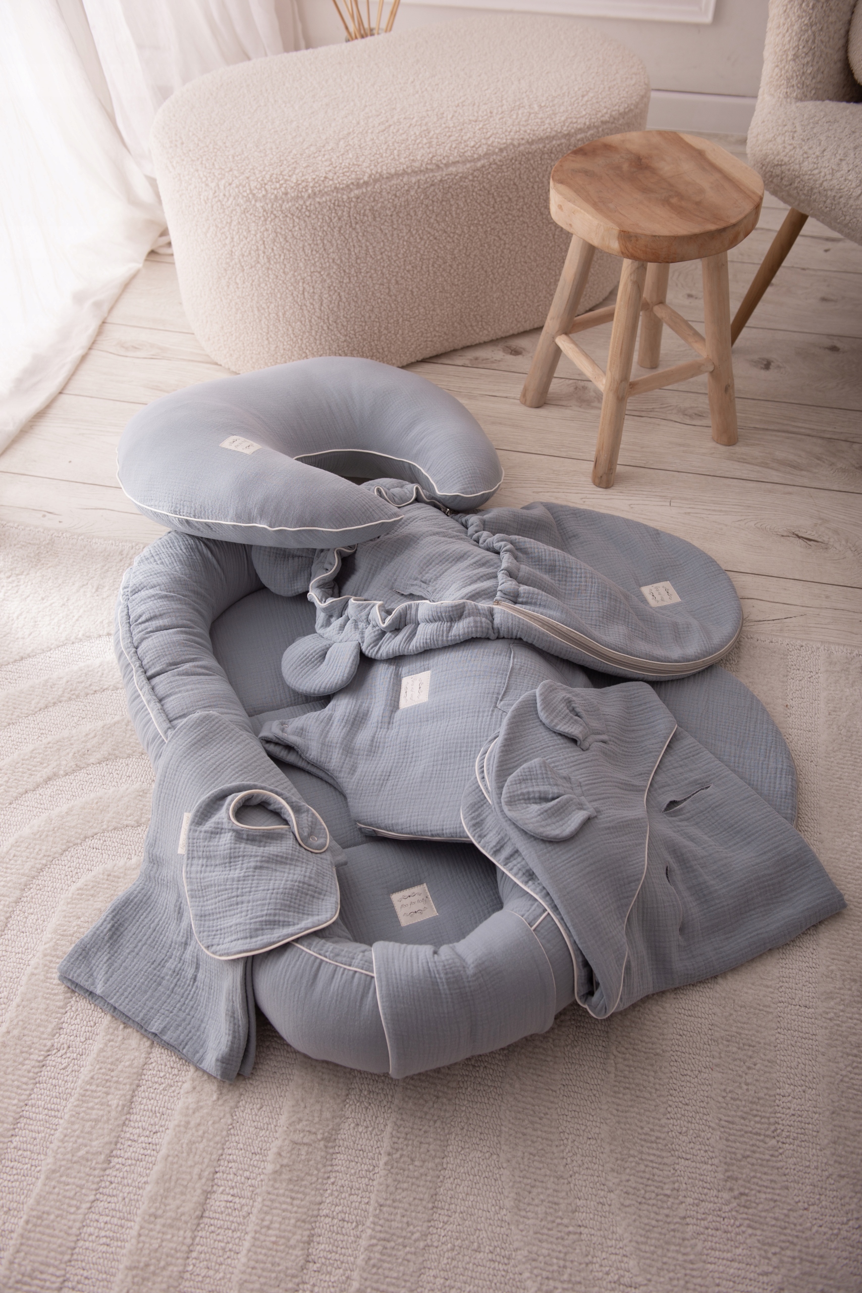 - Двухслойное одеяло/пеленка сшита из самого высокого класса антиаллергической муслиновой ткани двойного взгляда с большим весом. Экологическая подарочная коробка