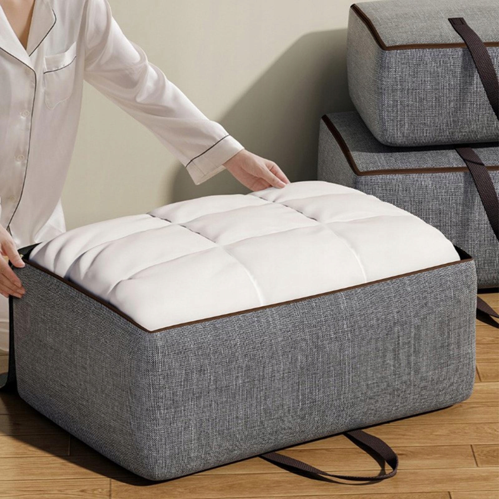 [Универсальность]: складную сумку для хранения можно использовать в шкафу или под кроватью. Подходит для одеял, подушек, зимней одежды и так далее. Кроме того, складная конструкция позволяет легко хранить ее, когда она не используется.