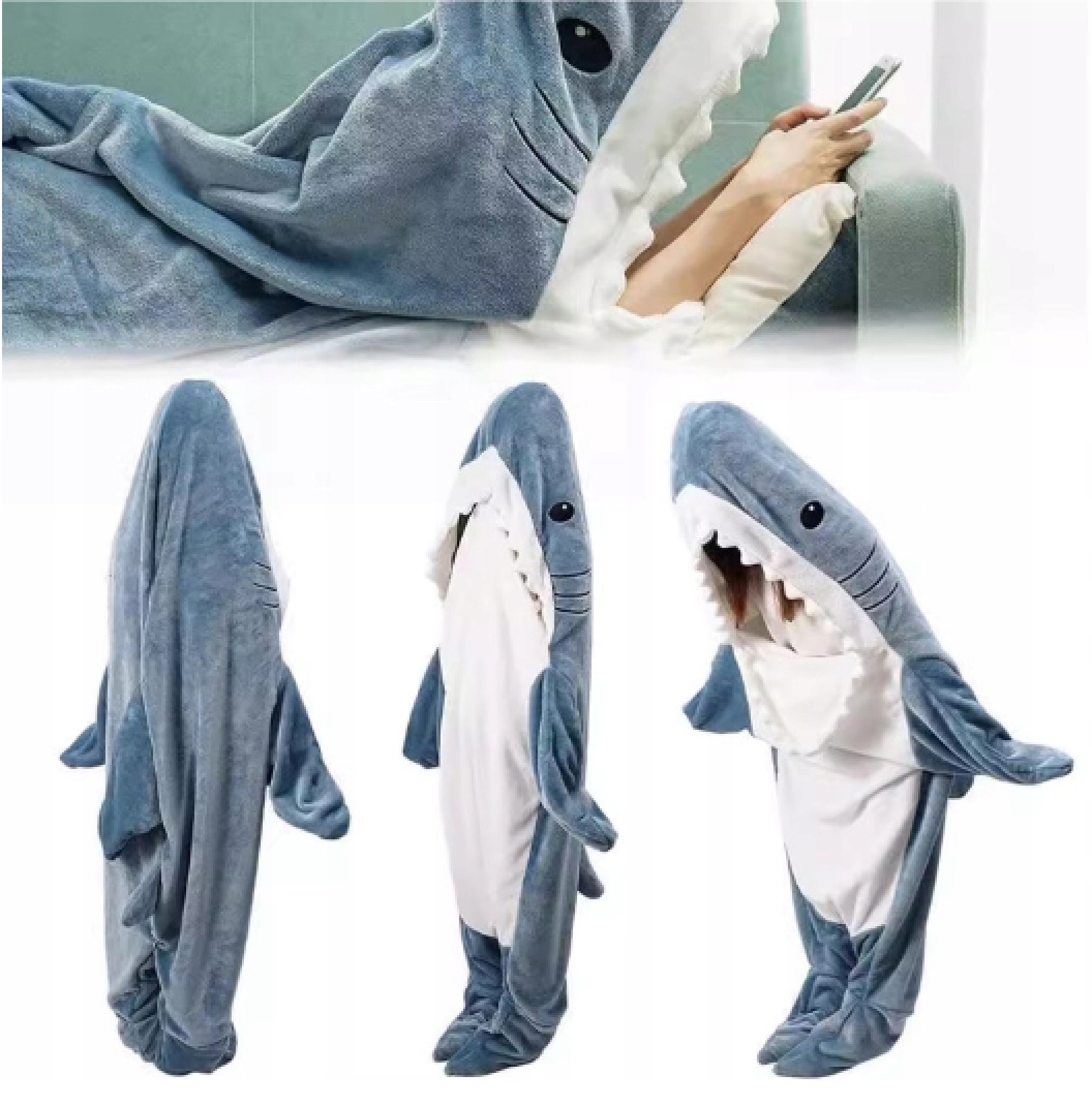 ОДЕЯЛО АКУЛА ПИЖАМА АКУЛА СПАЛЬНЫЙ МЕШОК КОСТЮМ СИНИЙ РАЗМЕР 170 СМ