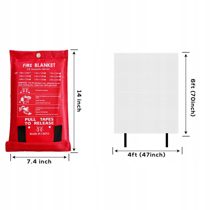 ✅ Стандарт: Противопожарное одеяло изготовлено из специально обработанного тканого высококачественного стекловолокна. Этот материал обеспечивает отличную устойчивость к огню и высоким температурам, эффективно блокирует доступ воздуха и быстро тушит пожар.