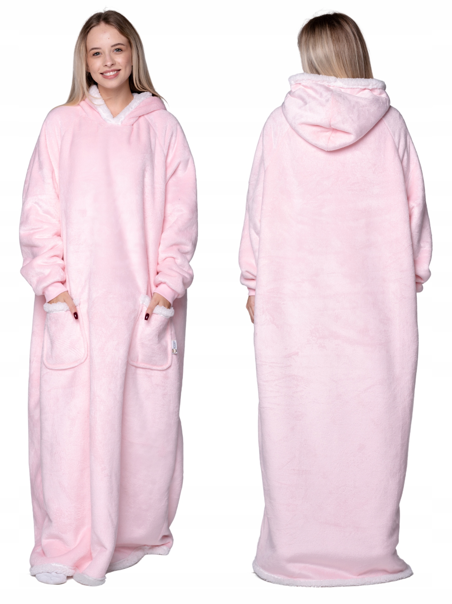 ТЕПЛЫЙ СВИТШОТ ОВЕРСАЙЗ-ОДЕЯЛО 2В1 ДЛИННЫЙ XXL - СВЕТЛО-РОЗОВЫЙ ⭐⭐⭐⭐⭐
