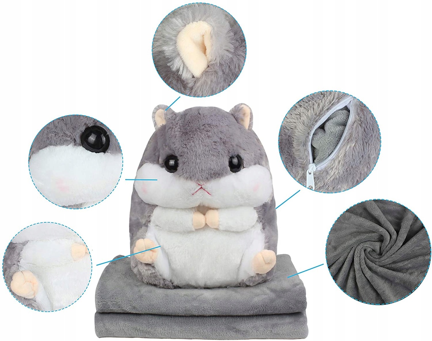 Милый плюшевый комплект из подушки и одеяла в виде хомяка – хороший выбор для подарков детям, друзьям и влюбленным