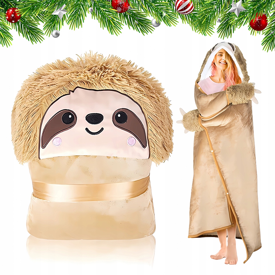 КОВДРА З КАПЮШОНОМ І РУКАВАМИ ТЕПЛЕ В ПОДАРУНОК БЕЖЕВИЙ ЛІНИВЕЦЬ ПОКРИВАЛО