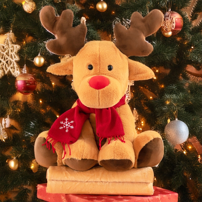 Этот очаровательный рождественский талисман представляет собой идеальное сочетание эстетики и функциональности. Изготовленная из мягкого, приятного на ощупь материала, она идеальна как украшение, мягкая игрушка и практичная подушка. Дополнительным преимуществом талисмана является одеяло размером 160х100 см, спрятанное у него на животе – незаменимое в холодные зимние вечера.