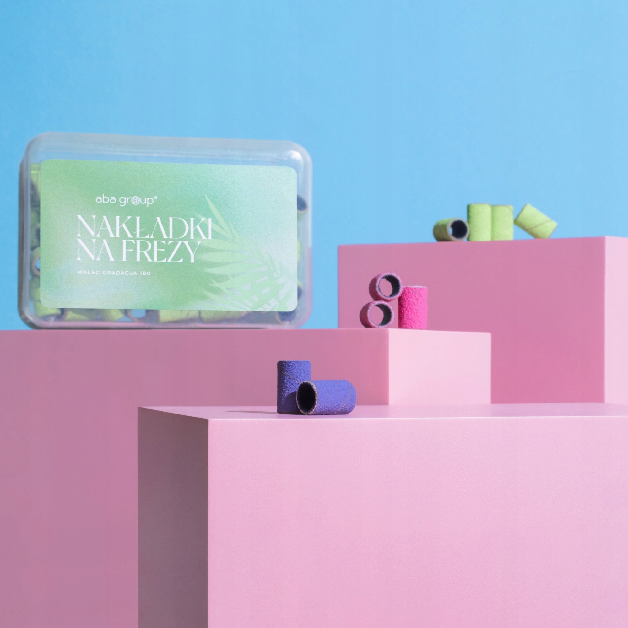 - Aba Group Накладки Колпачки для роликовых фрез Градация 120 Розовый Набор 100 шт.