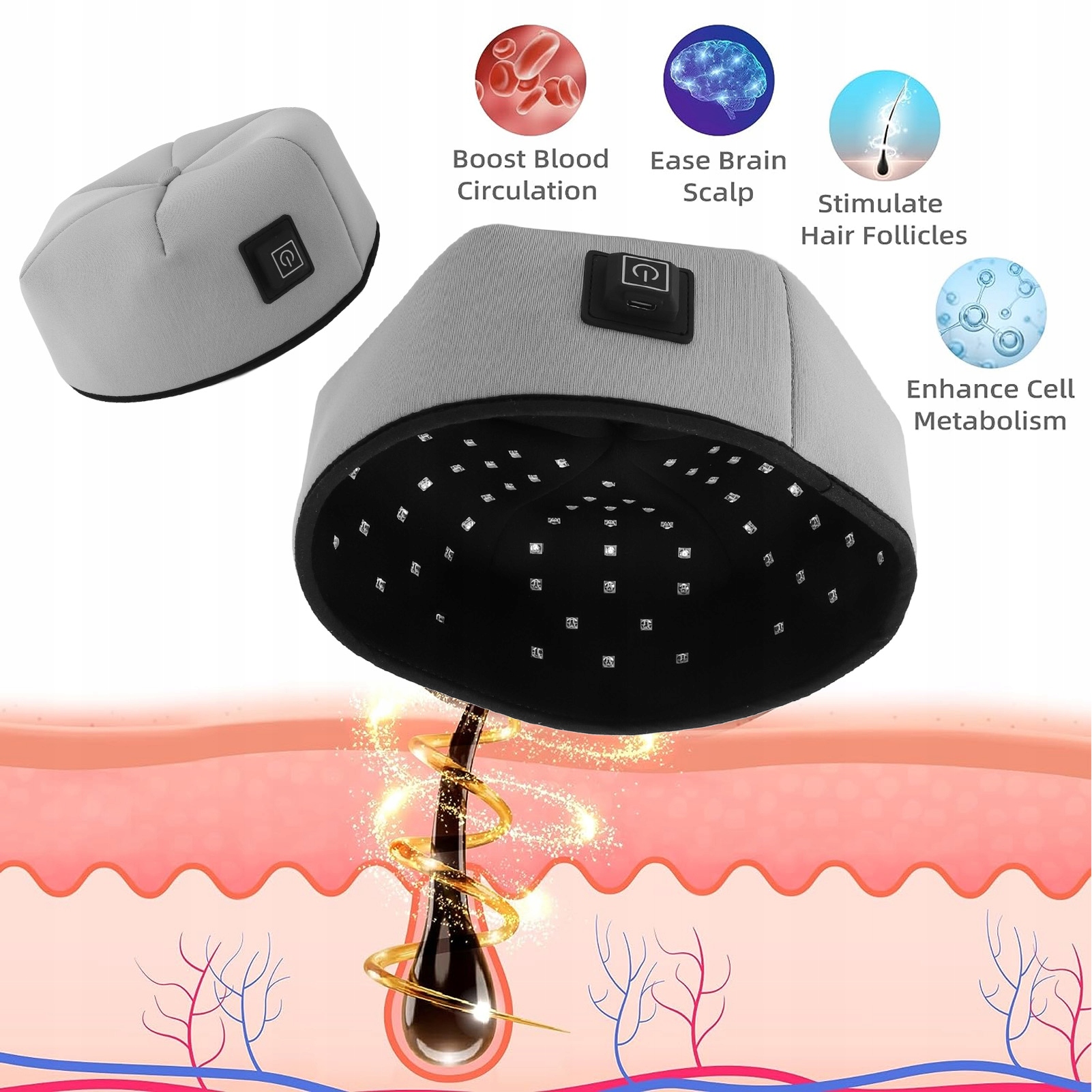 5. Легкий и комфортный вес. Это легкое устройство, работающее в ближнем инфракрасном диапазоне, легкое, но мягкое на ощупь и обеспечивает удобство при ношении. Подкреплено обширными исследованиями по улучшению кровообращения, улучшению сна и активации клеток фолликула.