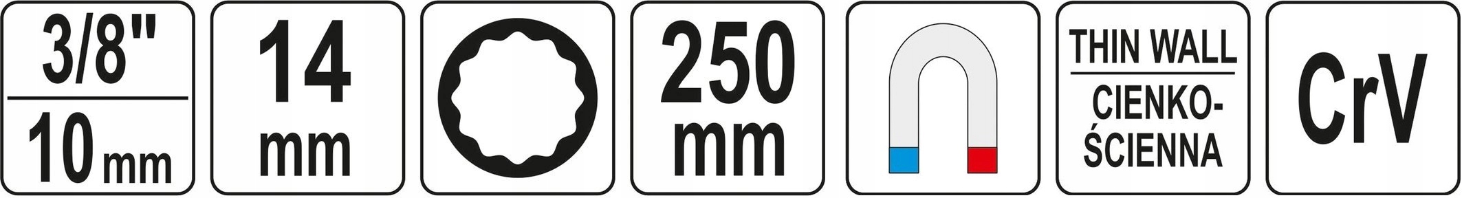 Шестигранный патрон для свечи EXTRA LONG 14 мм 250 мм, 3/8"