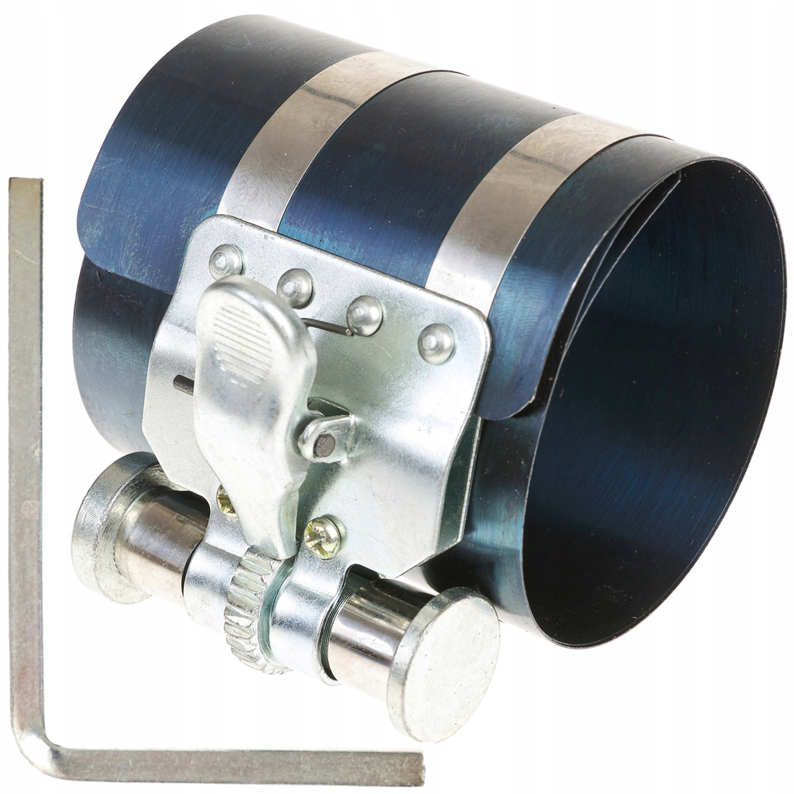 ⭐Поршневая лента с крючком и ключом для затягивания храпового механизма, помогающая установить поршень в корпус двигателя. Кримпер изготовлен из прочной стали, которая очень гибкая и позволяет сохранять правильную форму поршневых колец. Зажимной механизм имеет точную червячную передачу.