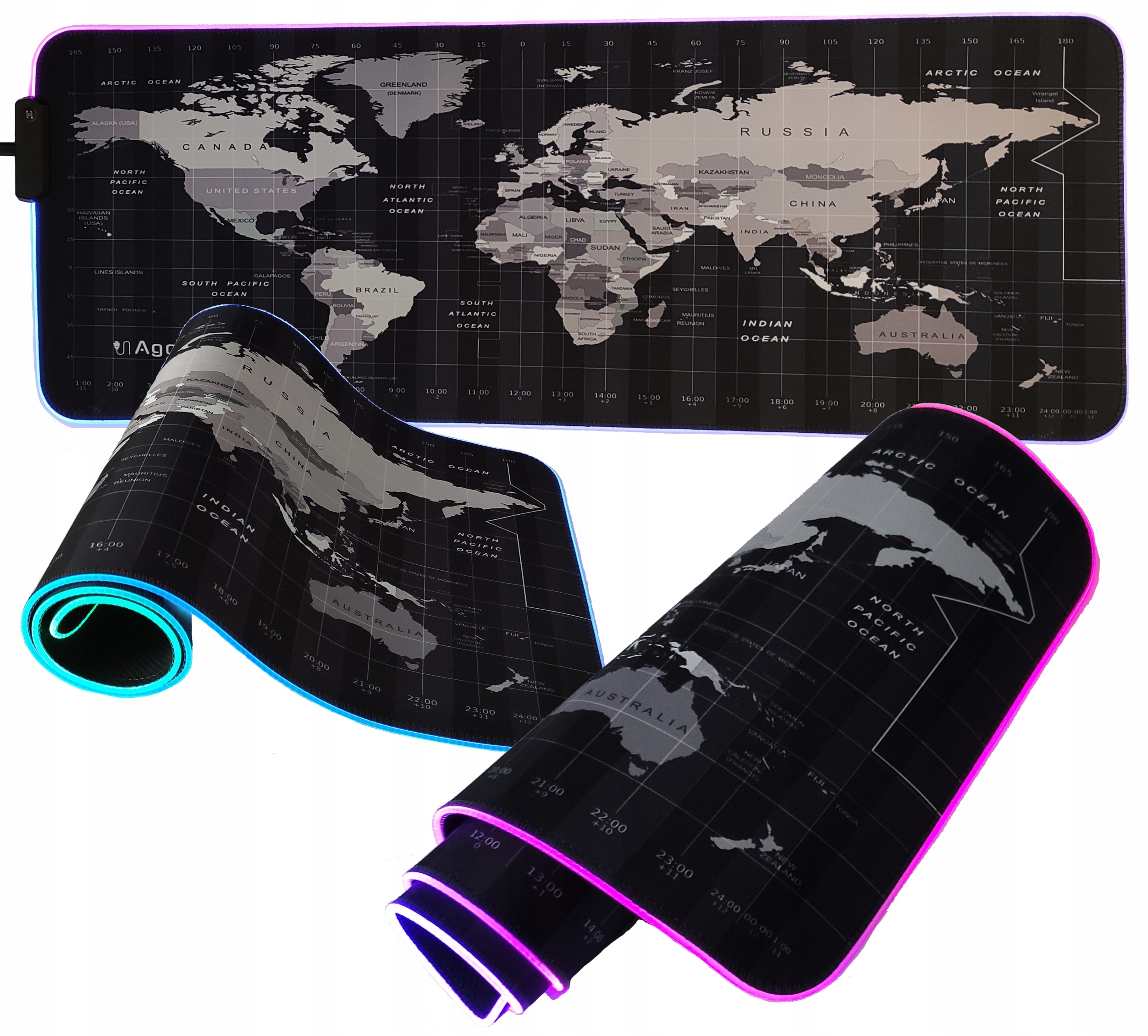 КОВРИК ДЛЯ ИГРОВОЙ МЫШИ С ПОДСВЕТКОЙ XXL, 80 x 30 см, MAP, 4 светодиодных режима