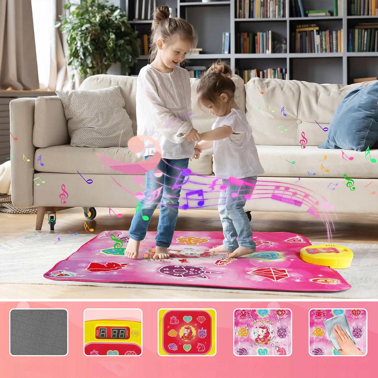 🦄🦄【Простота в использовании】Просто вставьте 4 батарейки типа АА 1,5 В (не входят в комплект), чтобы начать веселую танцевальную вечеринку. Сочетание танца и музыки поддерживает равновесие ребенка и укрепляет иммунитет организма.