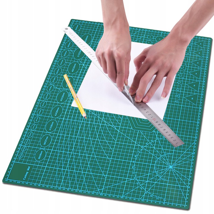 Коврик имеет разметку в сантиметрах, которая поможет вам измерить идеальный размер. Также имеются направляющие для измерения углов, необходимых для вырезания геометрических фигур.