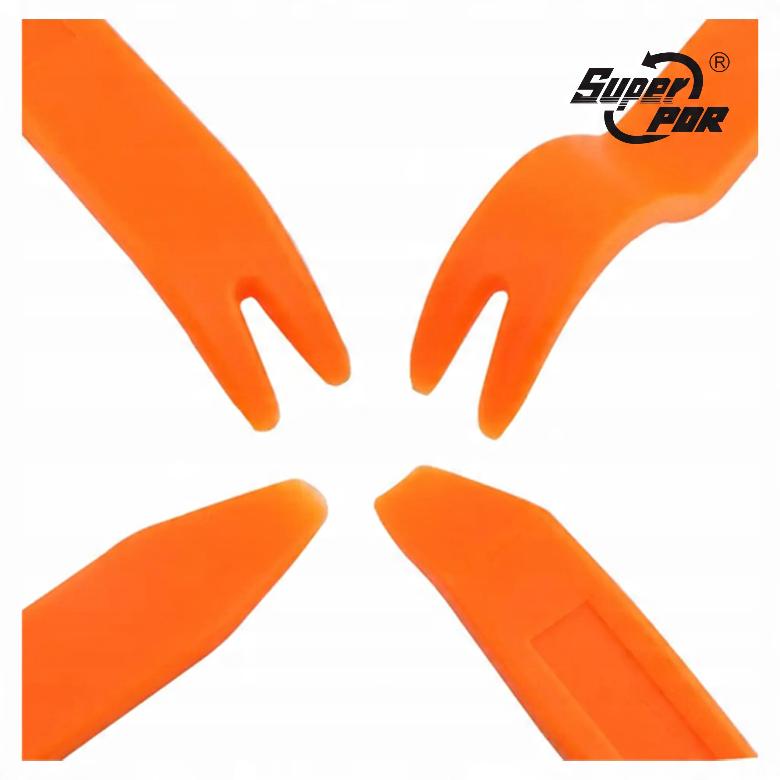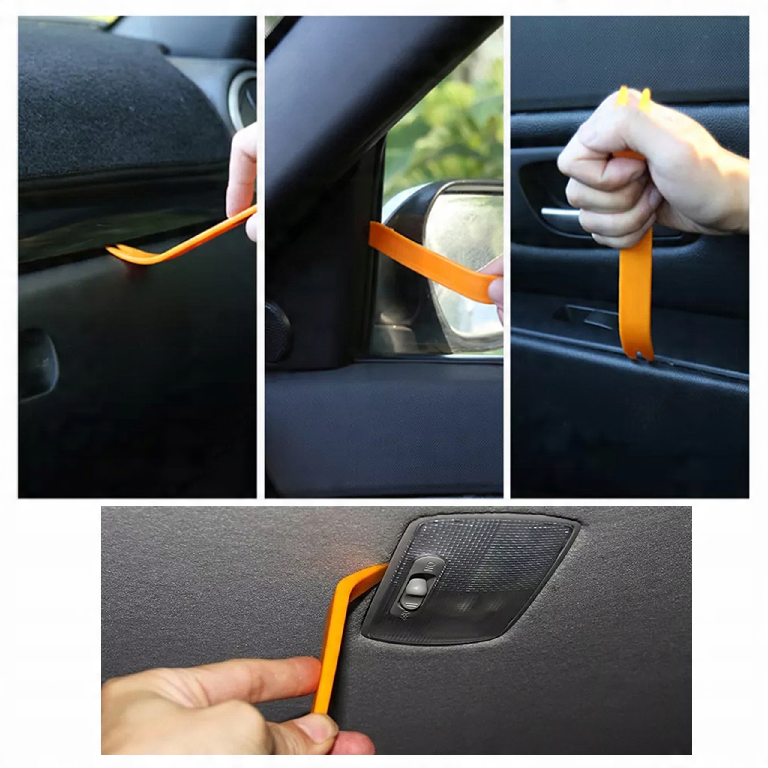 Набор из 4 съемников разной длины и формы для безопасного снятия обивки, молдингов автомобиля, дверных обшивок и т. д. Особенно рекомендуются для работ в автосервисах, кузовных, покрасочных и автодеталей.