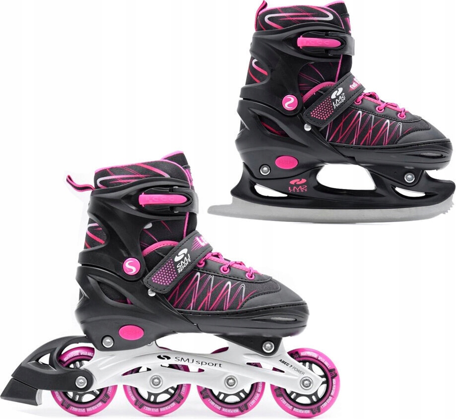 Роликовые коньки SMJ UT 103 Lea 2в1, чёрные и розовые