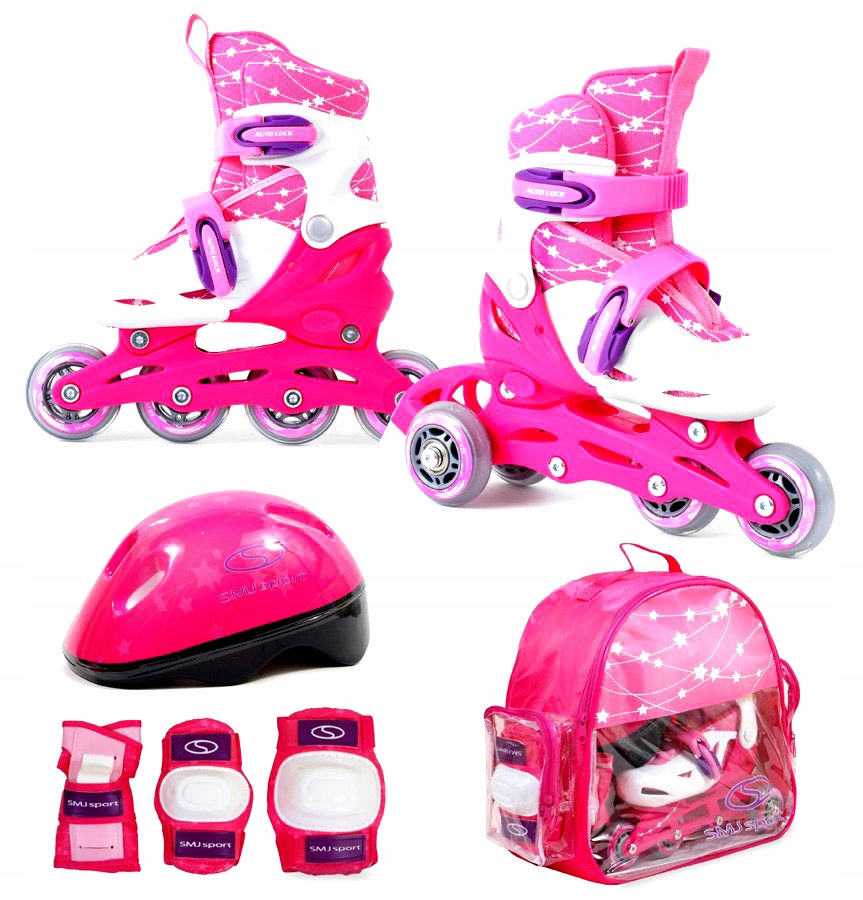 ✨КОМБО-набор спортивной модели SMJ КОМБО-НАБОР BS901P 2в1 РОЗОВЫЙ: роликовые коньки - роликовые коньки + шлем + комплект защит + практичная сумка✨