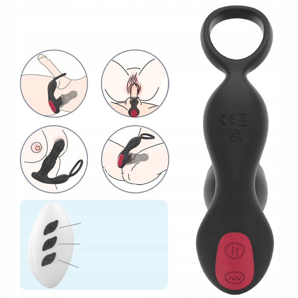 Его эргономичная форма позволяет одновременно стимулировать промежность и простату без использования рук. Управление массажером осуществляется с помощью беспроводного пульта дистанционного управления.
