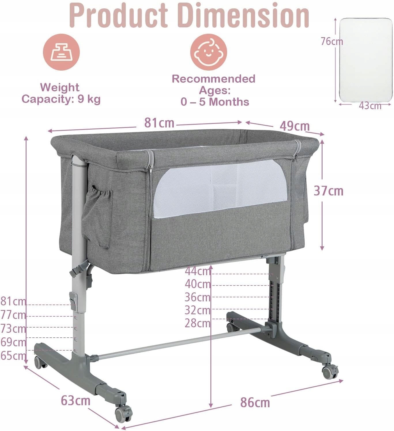 - Регулируемая высота и угол наклона: эта детская колыбелька идеального размера с 5 уровнями высоты находится рядом с кроватью. 2 боковых контейнера для хранения детских бутылочек и других детских принадлежностей.