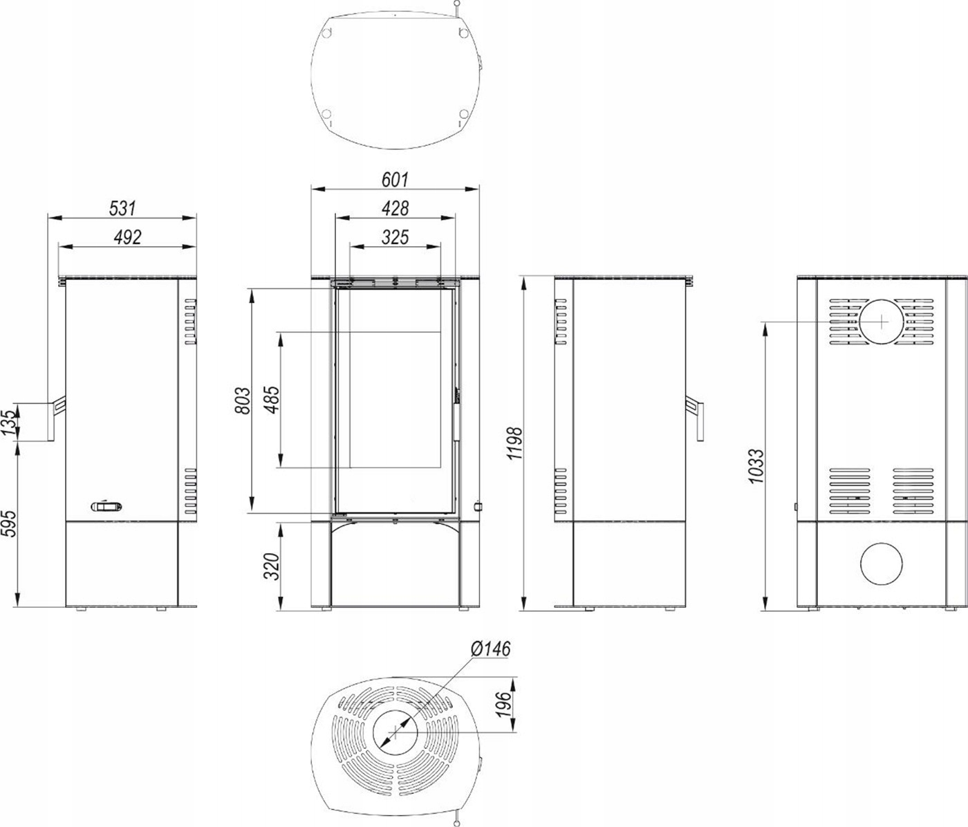 - Диаметр дымохода: 150 мм