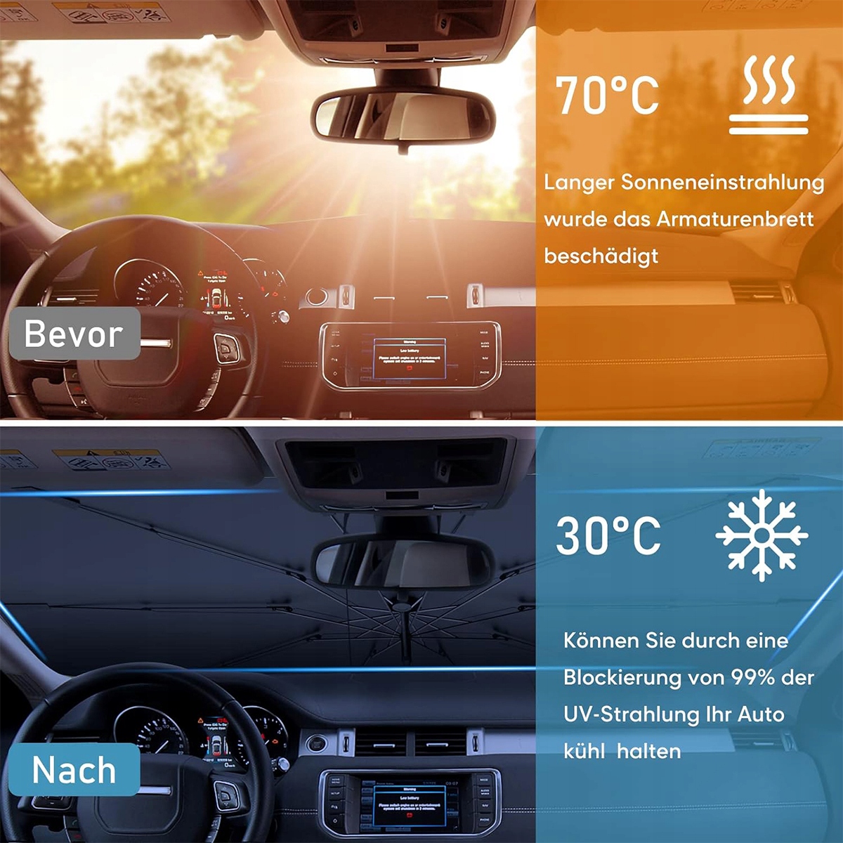 ✅ 【Усовершенствованная защита от солнца и тепла】 Благодаря наноткани ледяных кристаллов и отражающим композитным материалам UPF 50+ этот автомобильный солнцезащитный козырек эффективно блокирует четыре источника тепла: ультрафиолетовые лучи, инфракрасные лучи, солнечный спектр и тепловое излучение. Он защищает сиденья и приборную панель от растрескивания под воздействием солнечных лучей, а также создает интимную атмосферу в салоне.