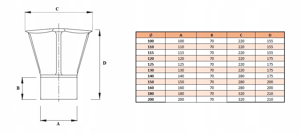 зонтик для дымоходов Fi 200 мм кислота -устойчивой