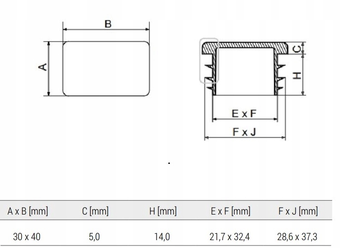 ДЮБЕЛЬ ПВХ ДЛЯ ПРОФИЛЯ 30Х40мм, ЧЕРНЫЙ RAL 9005