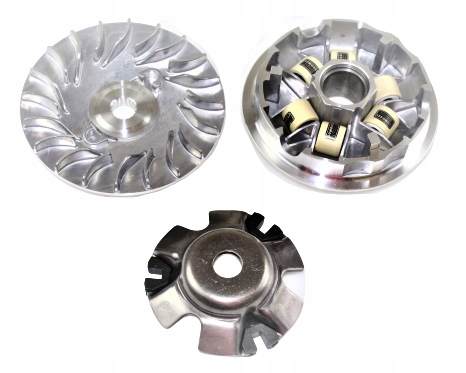 Набор очень качественно и добротно изготовлен в соответствии с заводскими размерами и имеет гораздо лучший стандарт качества по сравнению с оригинальным товаром. Использованный при производстве очень качественный алюминий повышает термическую стойкость вариатора, поэтому он не перегревается и не так быстро изнашивается. Версия «LIGHT», то есть уменьшенная в размерах и очень легкая, обеспечивает наилучшее скольжение вариатора и одинаковую выходную мощность даже в экстремальных условиях. На фотографиях представлен реальный внешний вид товара. Вариатор устанавливается без необходимости внесения каких-либо изменений в конструкцию привода двигателя и может использоваться со стандартным ремнем. Он полностью укомплектован и готов к установке. Благодаря проверенному, высокому качеству, он обеспечивает длительную и безотказную работу.