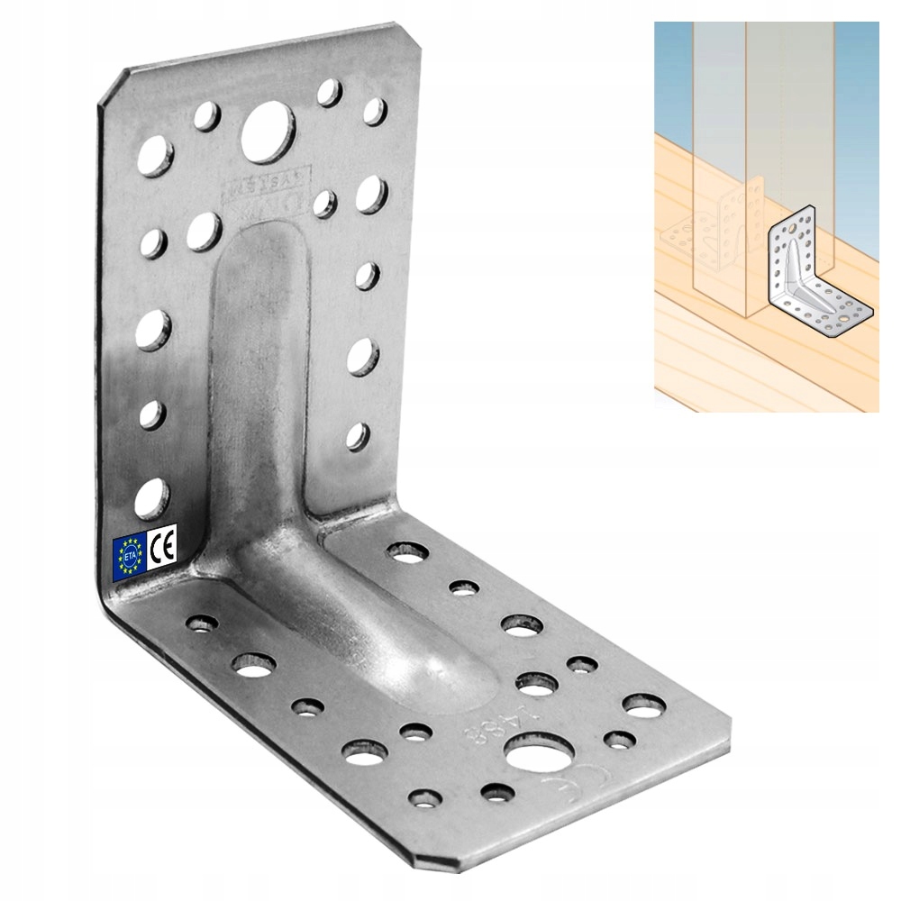 Уголки КПЛ со светлым тиснением имеют широкий спектр продуманных рисунков отверстий, поэтому их можно использовать как в стандартных решениях, так и подбирать для индивидуально спроектированных стыков. Для углов характерен отход от традиционных рисунков отверстий в пользу адаптации к требованиям Еврокода, где одним из важнейших является соблюдение минимальных расстояний и расстояний между гвоздями. Уголки КПЛ изготавливаются из более тонкого материала.