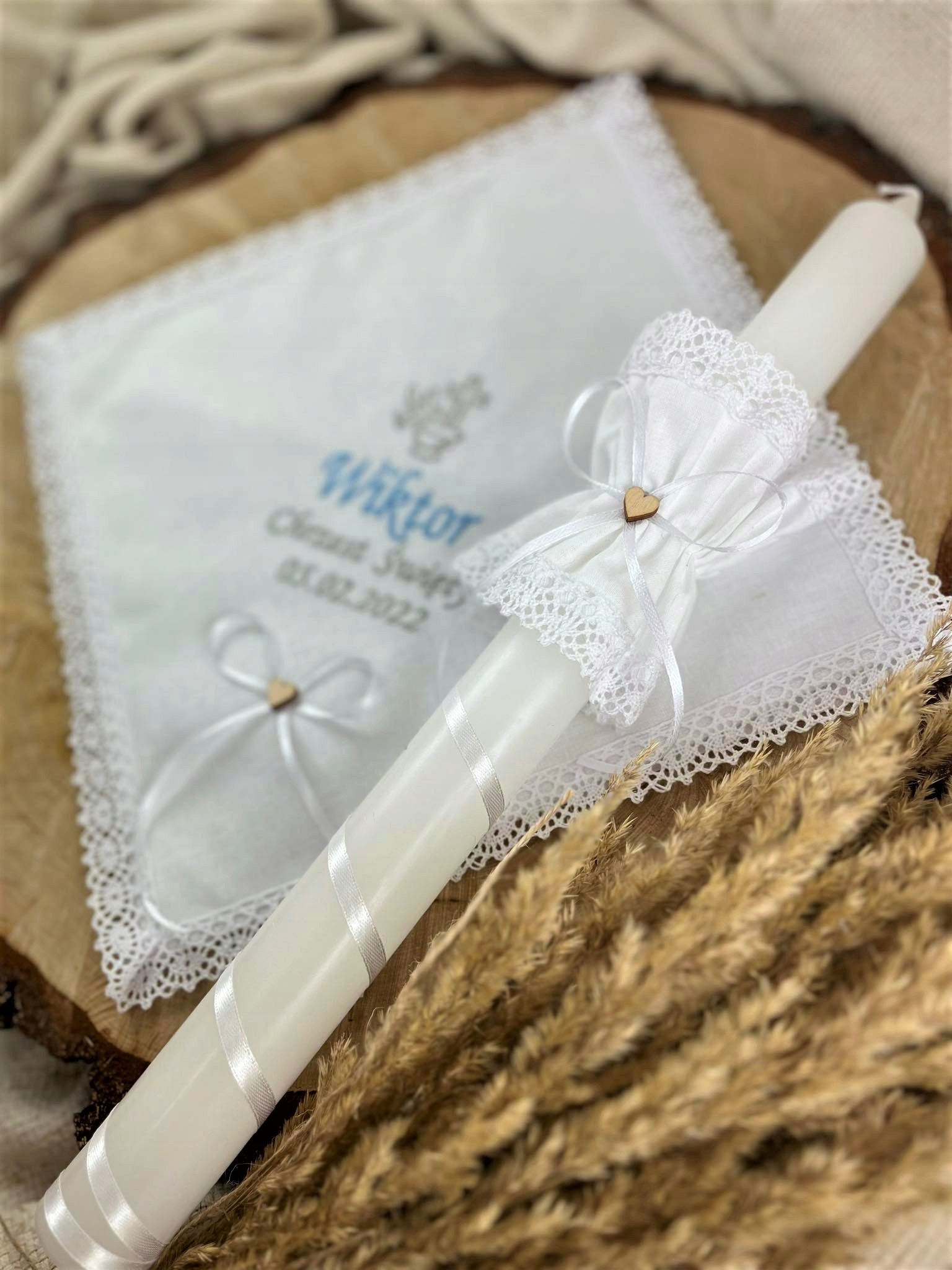 - Свечаизготовлена из высококачественного парафина, длиной 43см, в форме изящного конуса. Украшен белой атласной лентой.
