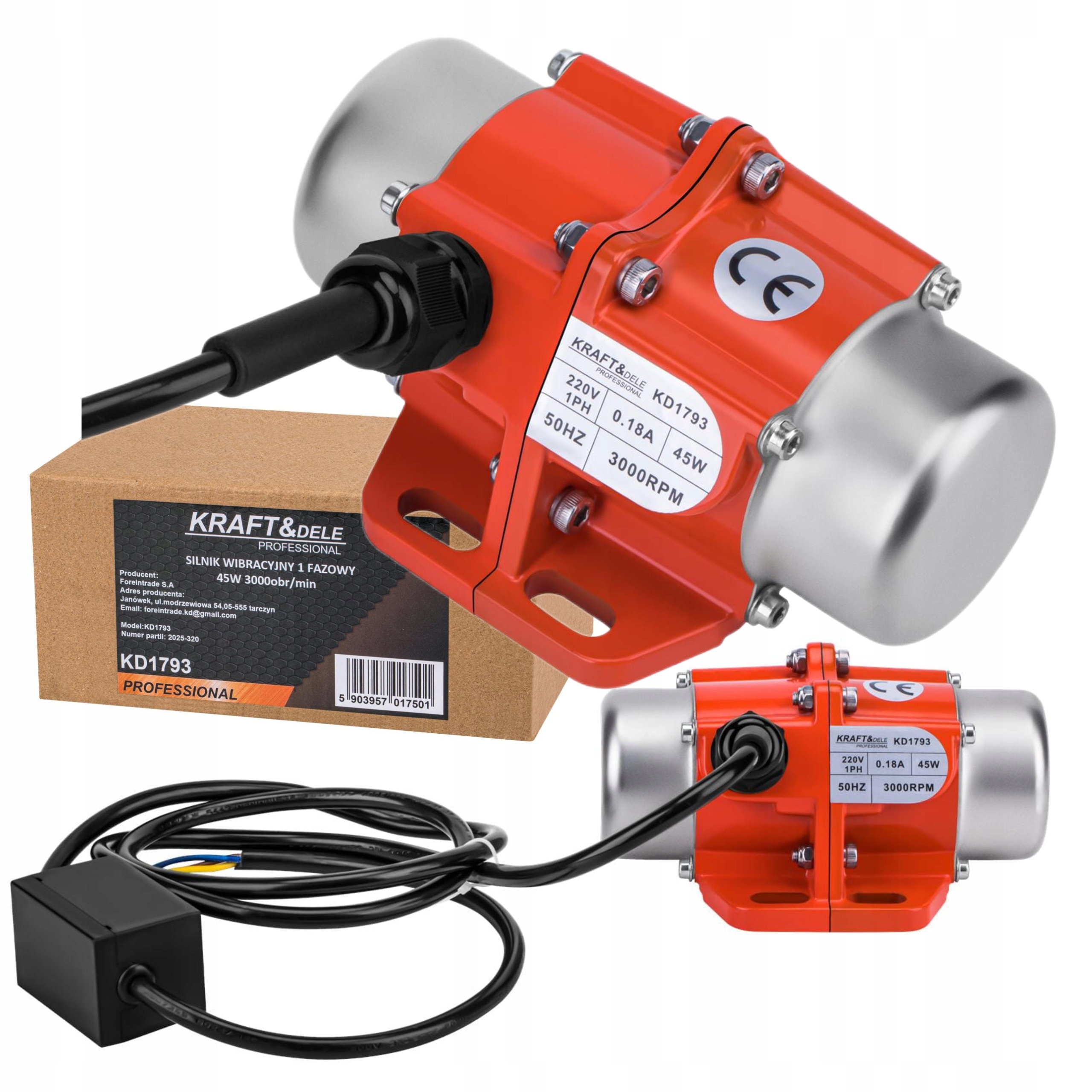 KRAFT&DELE 1-ФАЗНЫЙ ВИБРАЦИОННЫЙ ДВИГАТЕЛЬ 45ВТ 3000 ОБОРОТОВ 220В KD1793