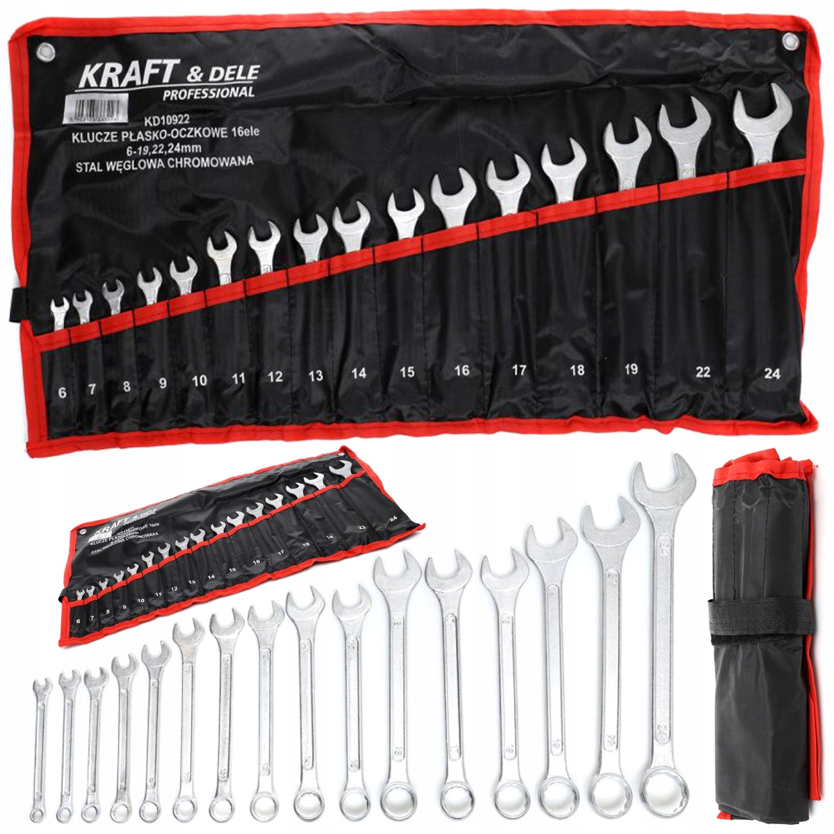 Kraft&Dele 16 шт. КОМБИНИРОВАННЫЕ КЛЮЧИ 6-24 мм ОТКРЫТЫЕ КЛЮЧИ