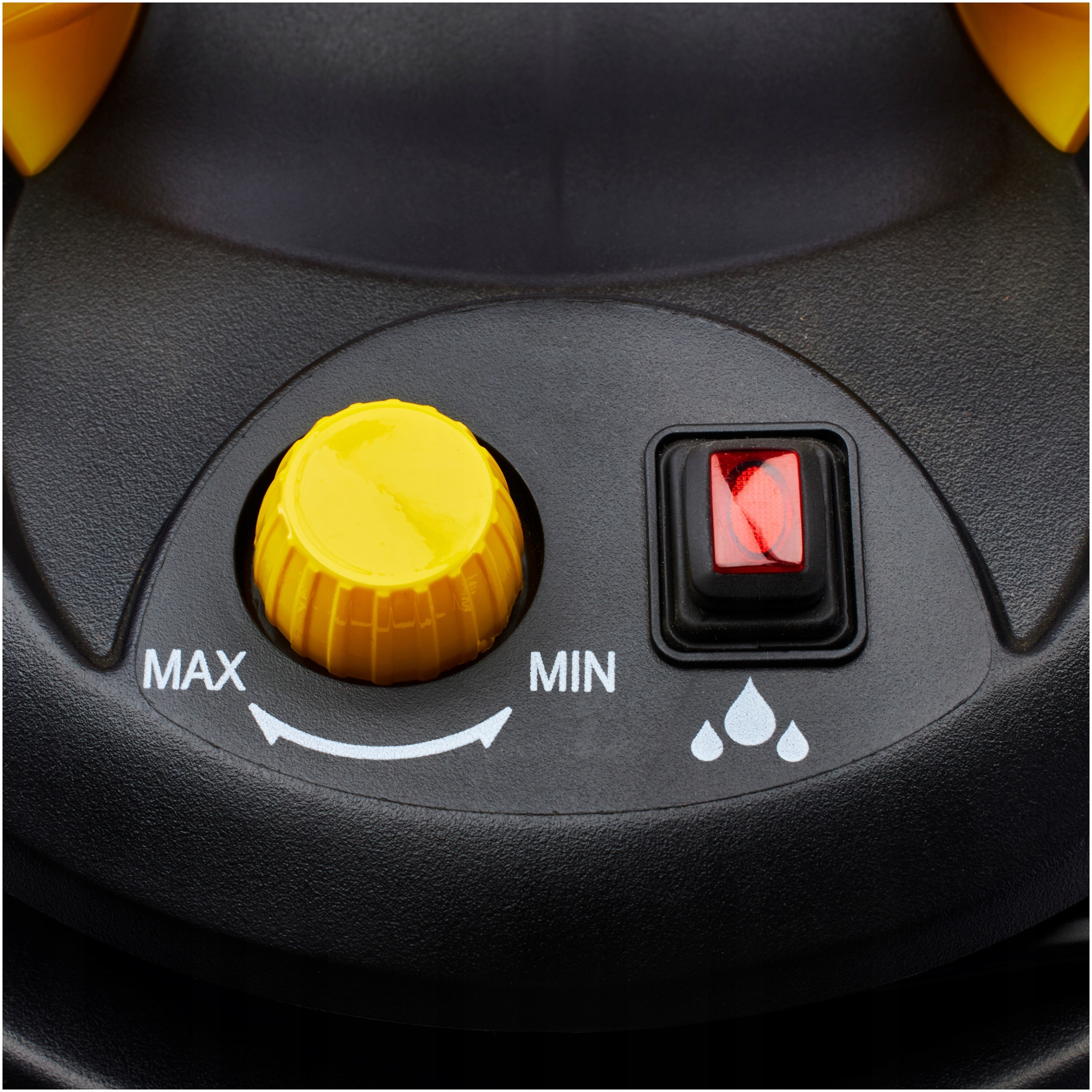 Двигатель мощностью 1400 Вт обеспечивает превосходные характеристики всасывания, сокращая время высыхания очищенных поверхностей. Колеса облегчают перемещение пылесоса во время работы.