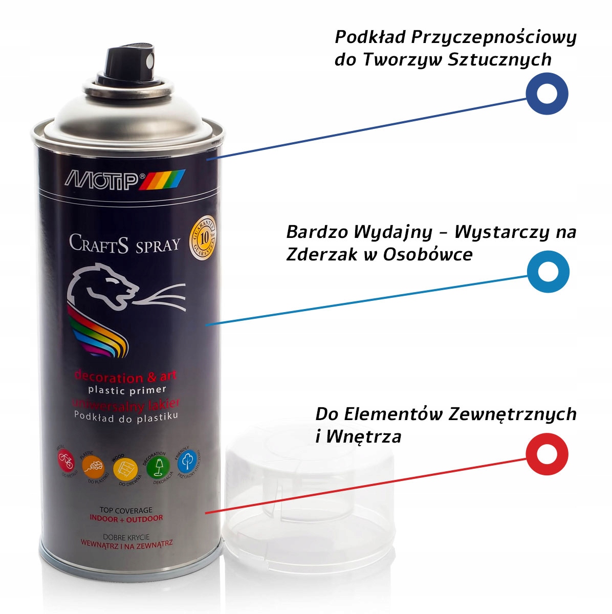 Грунтовка для пластика в баллончике. Обладает высокой гибкостью и отличной адгезией к большинству пластиков. Продукт, необходимый для покраски бамперов, спойлеров, пластиковых полос и других элементов.