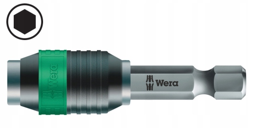 Держатель Rapidaptor с быстрозажимным механизмом предназначен для бит ¼ дюйма, изготовленных по стандарту DIN ISO 1173-C 6.3 + E 6.3 (серии Wera 1 и 4).