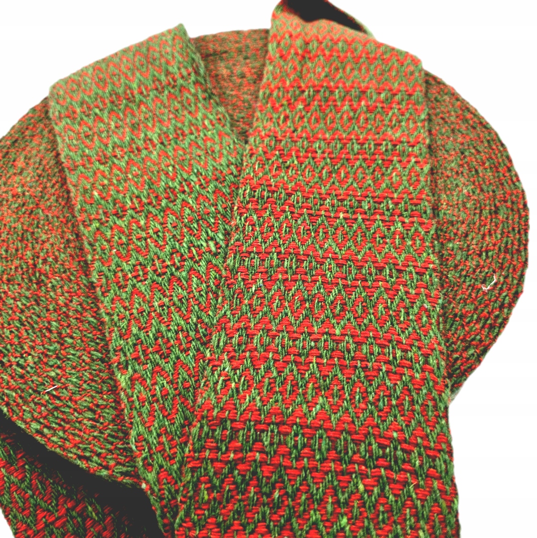 Ремень ручной работы с кромкой 9 см WRAPS Шерсть 100% ромб ЗЕЛЕНЫЙ-КРАСНЫЙ KD5