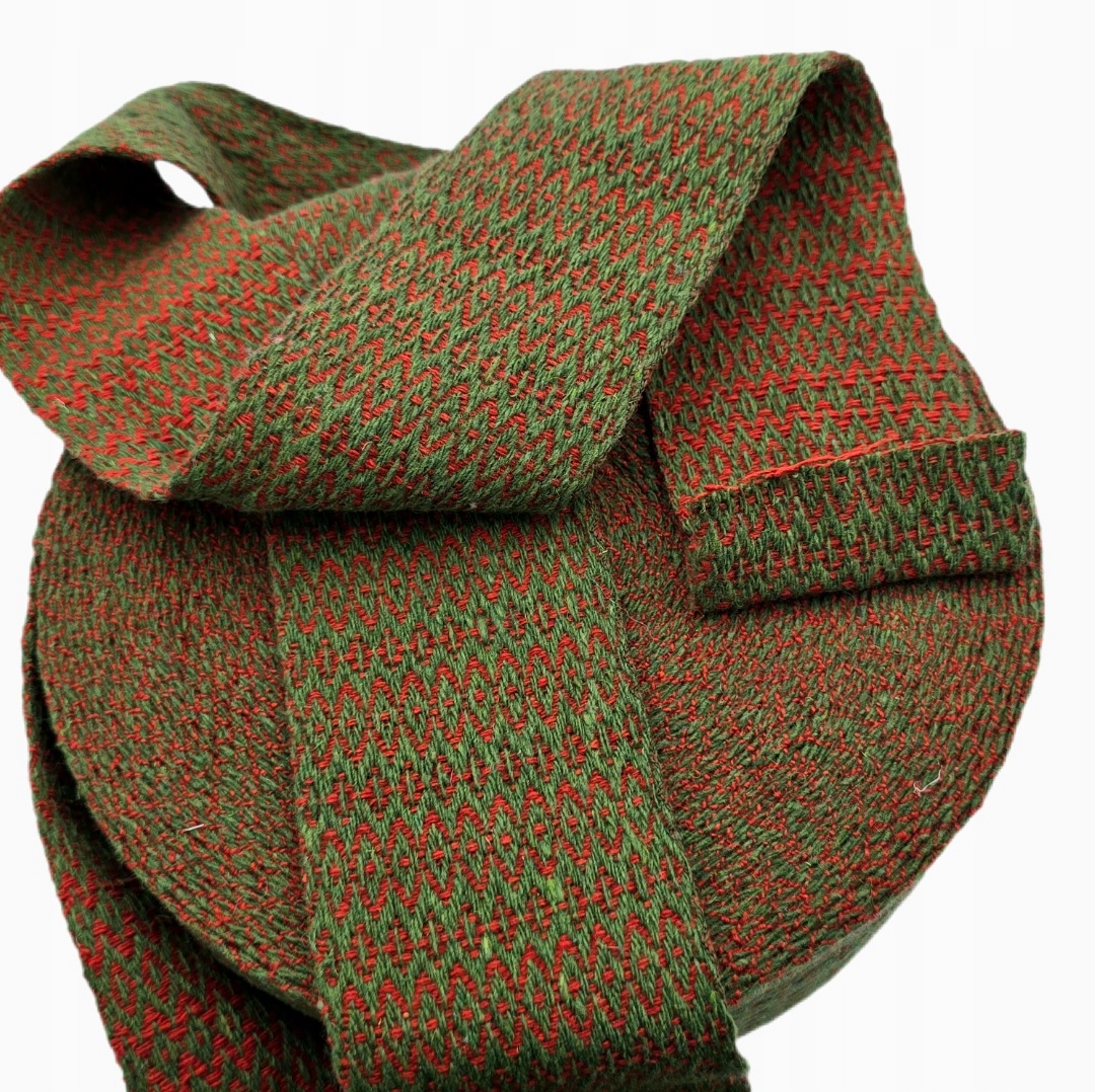 Предлагаю Вам уникальный пояс ручной работы (селвидж) из натуральной шерсти с историческим ромбовидным узором. Каждое изделие является результатом традиционного мастерства и является идеальным дополнением к историческим костюмам, особенно для реконструкций раннего средневековья. Классический ромбовидный узор придает кромке аутентичный вид, благодаря чему она идеально сочетается с туникой, платьем или кафтаном.